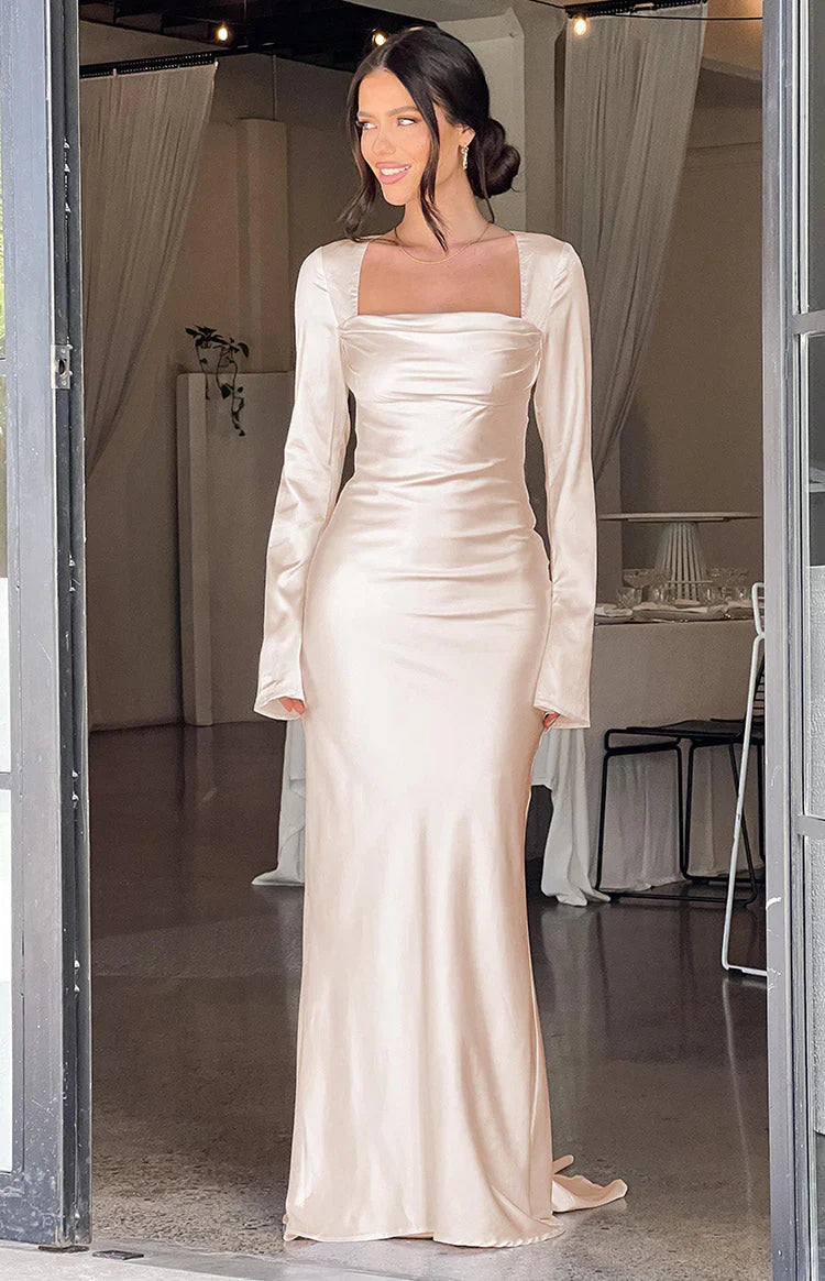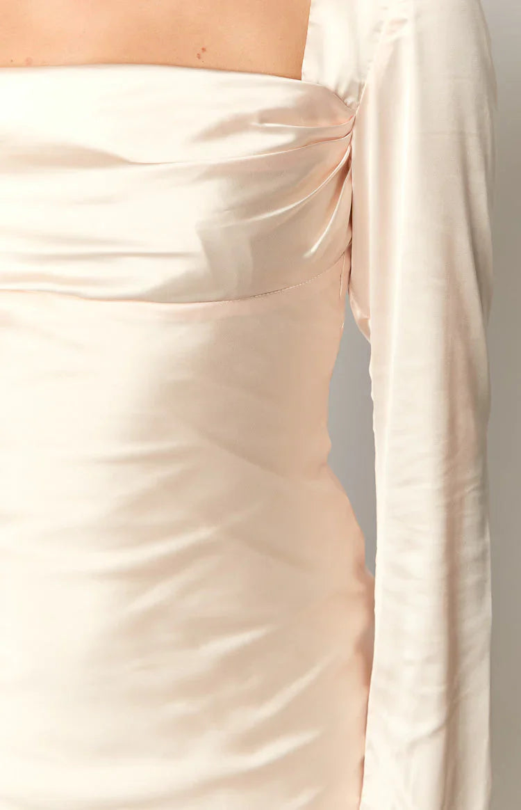 Cream Long Sleeve Maxi Dress