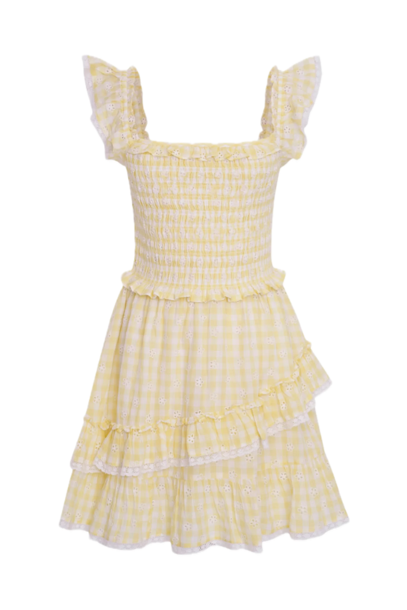 Eyelet smocked a line mini dress