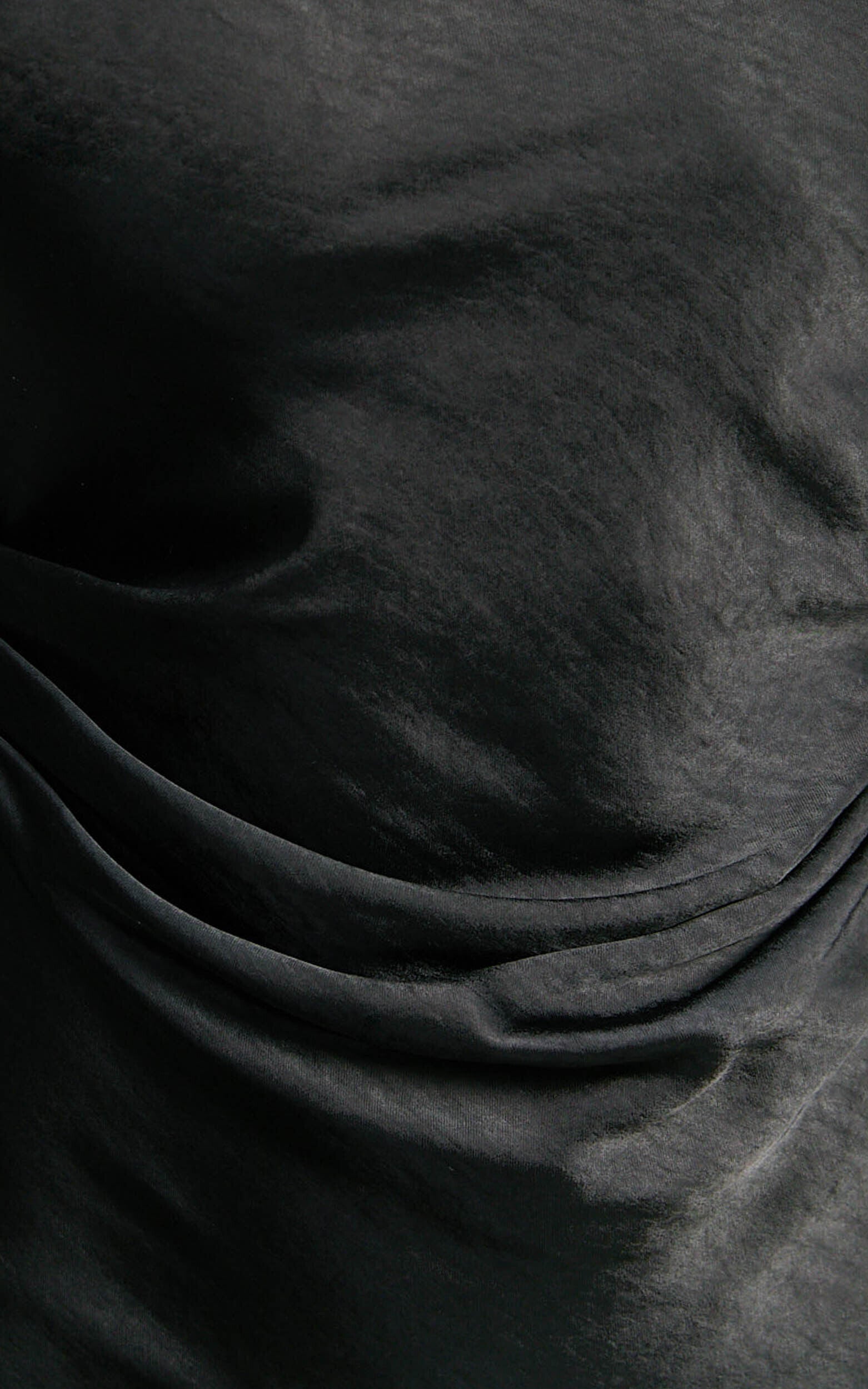 Discover the perfect look in our Arriana Midi Dress, a stunning long sleeve cowl back satin dress in an elegant black that redefines formal elegance with a modern twist. Designed with today's dynamic women in mind, this dress is a testament to the power of feeling confident and looking your absolute best, no matter the occasion.Product Details:Formal DressSatin FinishScoop NecklineFormal UseMidi LengthLong SleevePolyester MaterialMaterial and Care100% PolyesterLow / No stretch