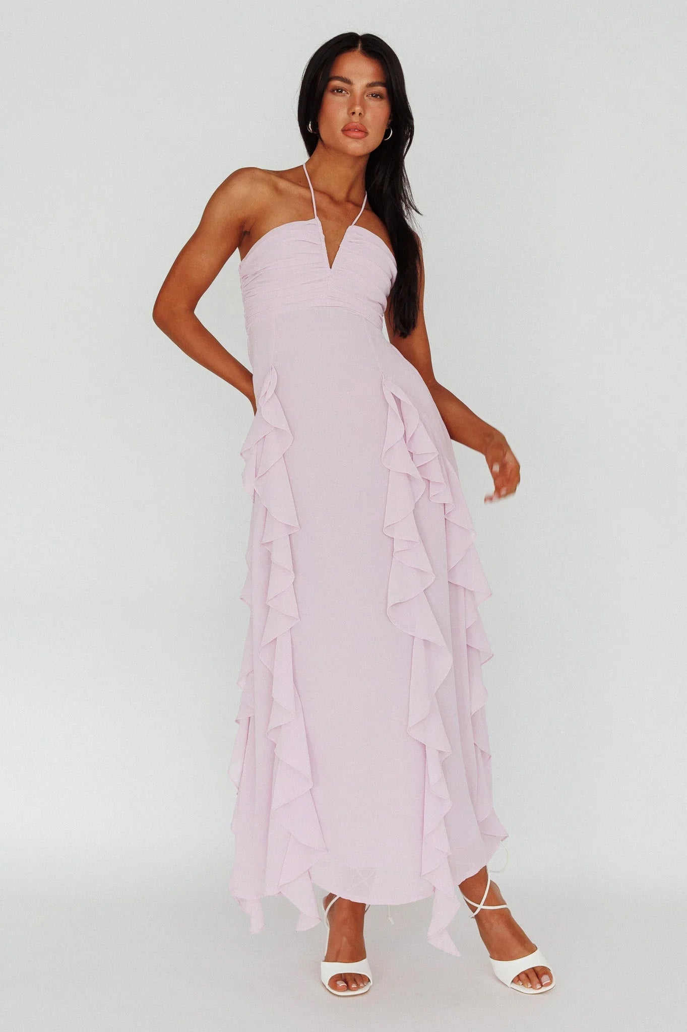 Float through your weekend in our gorgeous Asiah maxi dress. Featuring cascading ruffles and a V-wire in the bust. It's perfect for a Summer night out with your besties. Team it with tan mules and a baguette bag for a chic look we are loving.