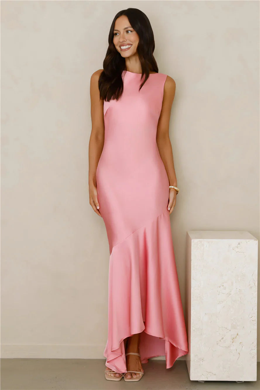 The formal dress of your dreams is here! The Bespoke Beauty Satin Maxi Dress features a gorgeous satin silhouette, tie-up shoulder straps to the back and a high-low skirt. Style with heels.