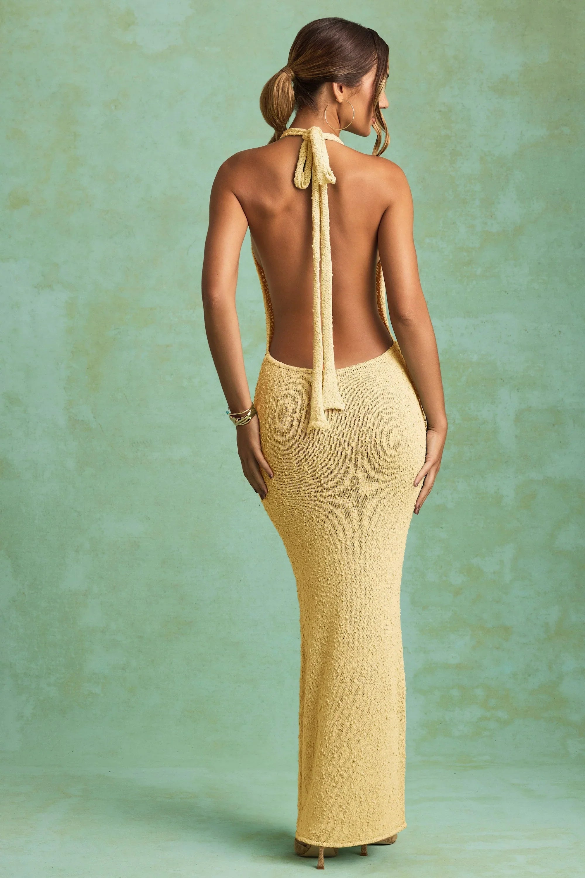 A love letter to summer dressing. Crafted from lightly textured and subtly sheer bouclé knit fabric, the Mirri maxi dress is a warm-weather favourite that can be styled on holiday and at home. It’s cut to a classic halterneck silhouette with adjustable straps for custom styling and is designed to skim your curves.