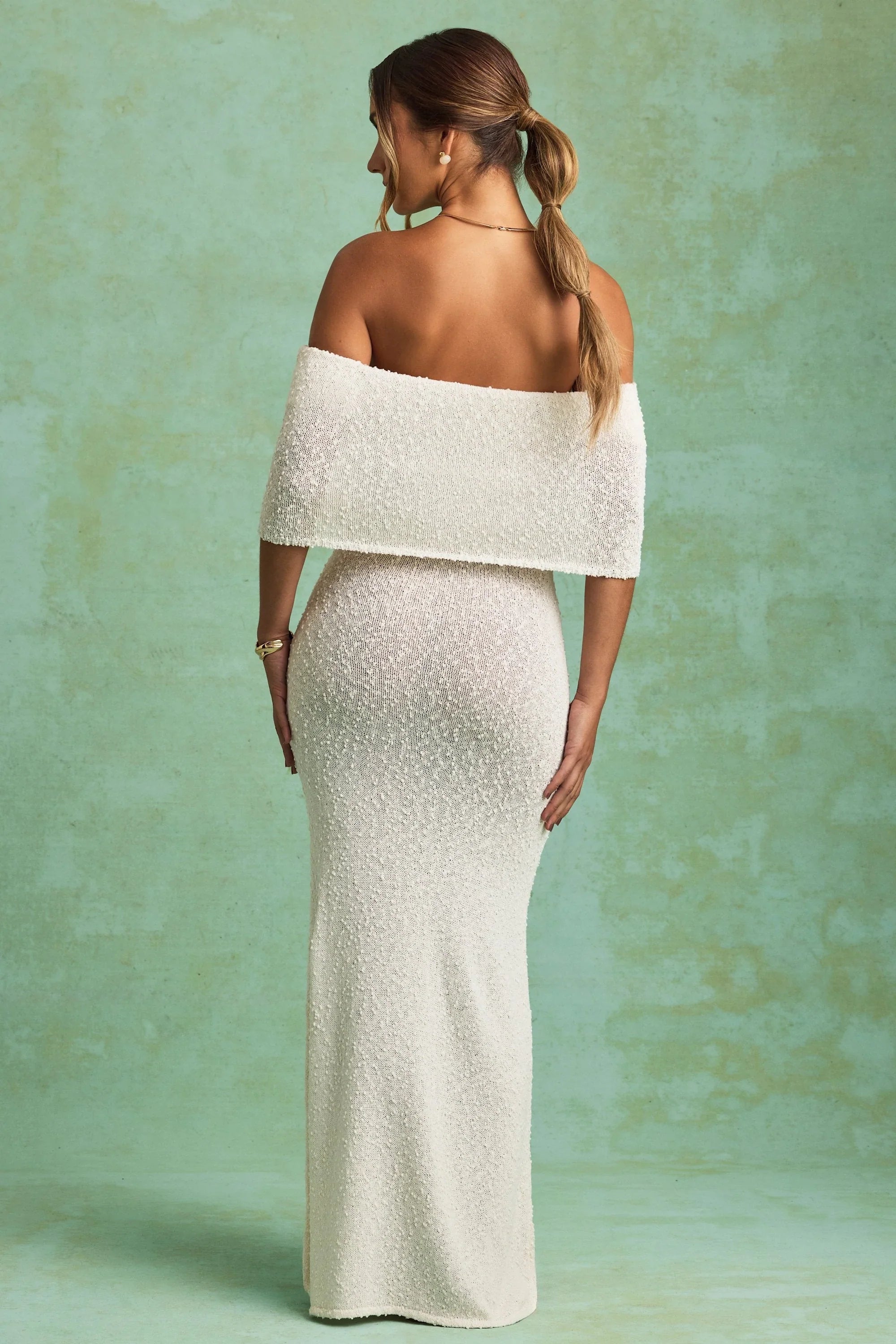Summer dressing made easy. Designed for layering over your bikini on holiday or dressing up for dinner dates, the Naia maxi dress is crafted from lightly textured and subtly sheer bouclé knit fabric that hugs your curves. It’s cut to an off-shoulder silhouette with a foldover panel that can be adjusted for your perfect fit.