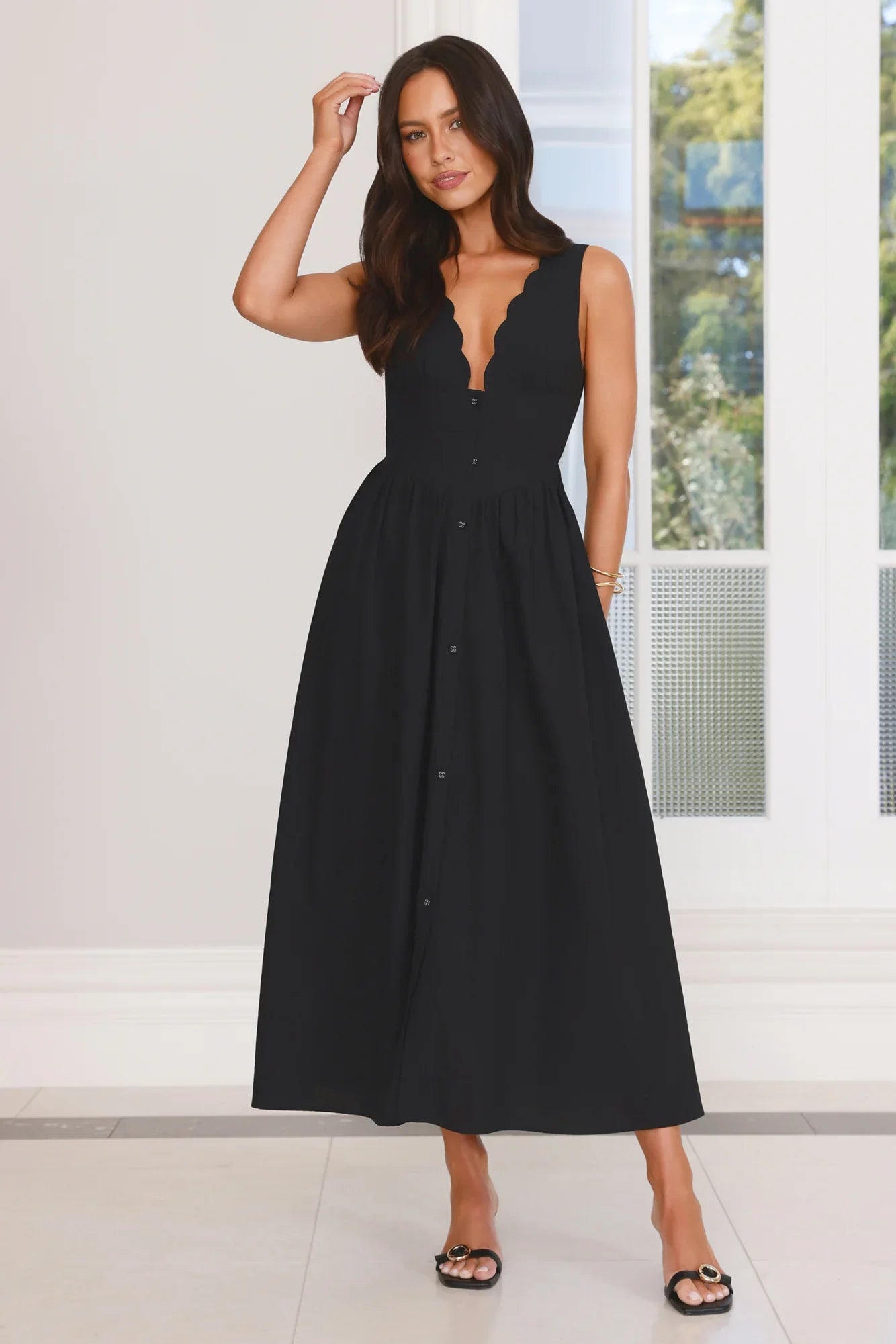 Glow through the golden hour in the Chasing Daylight Maxi Dress, featuring a button-front, flowy skirt, elastic back, open back detail, and an easy slip-on fit for effortless elegance.