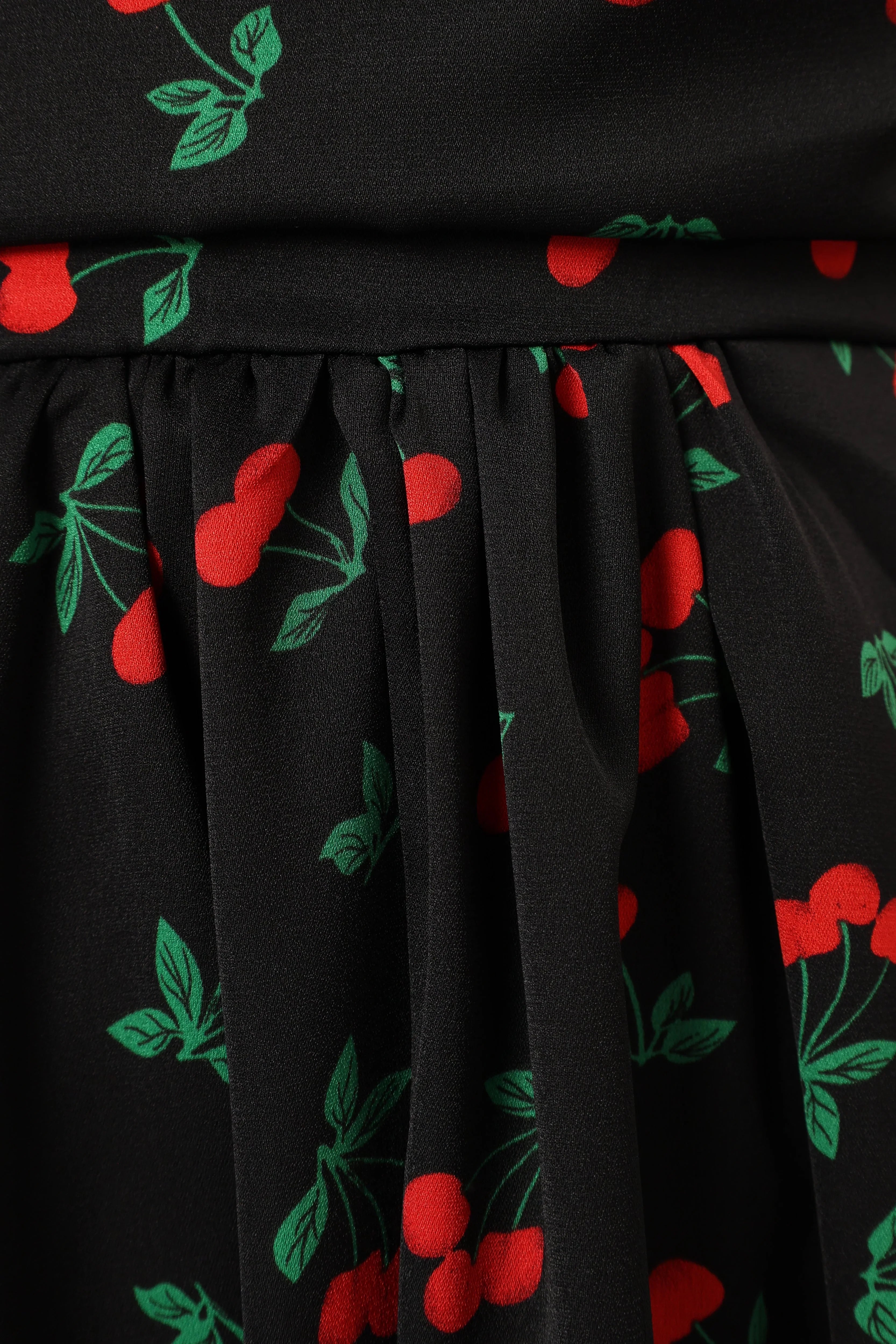 | DETAILS The classic style of the midi dress is taken up a notch with this piece. Featuring a square neckline and short puff sleeve with an elasticised shoulder. The back shirred panel ensures a perfect fit, while the cherry print is what truly sets this beautiful dress apart.