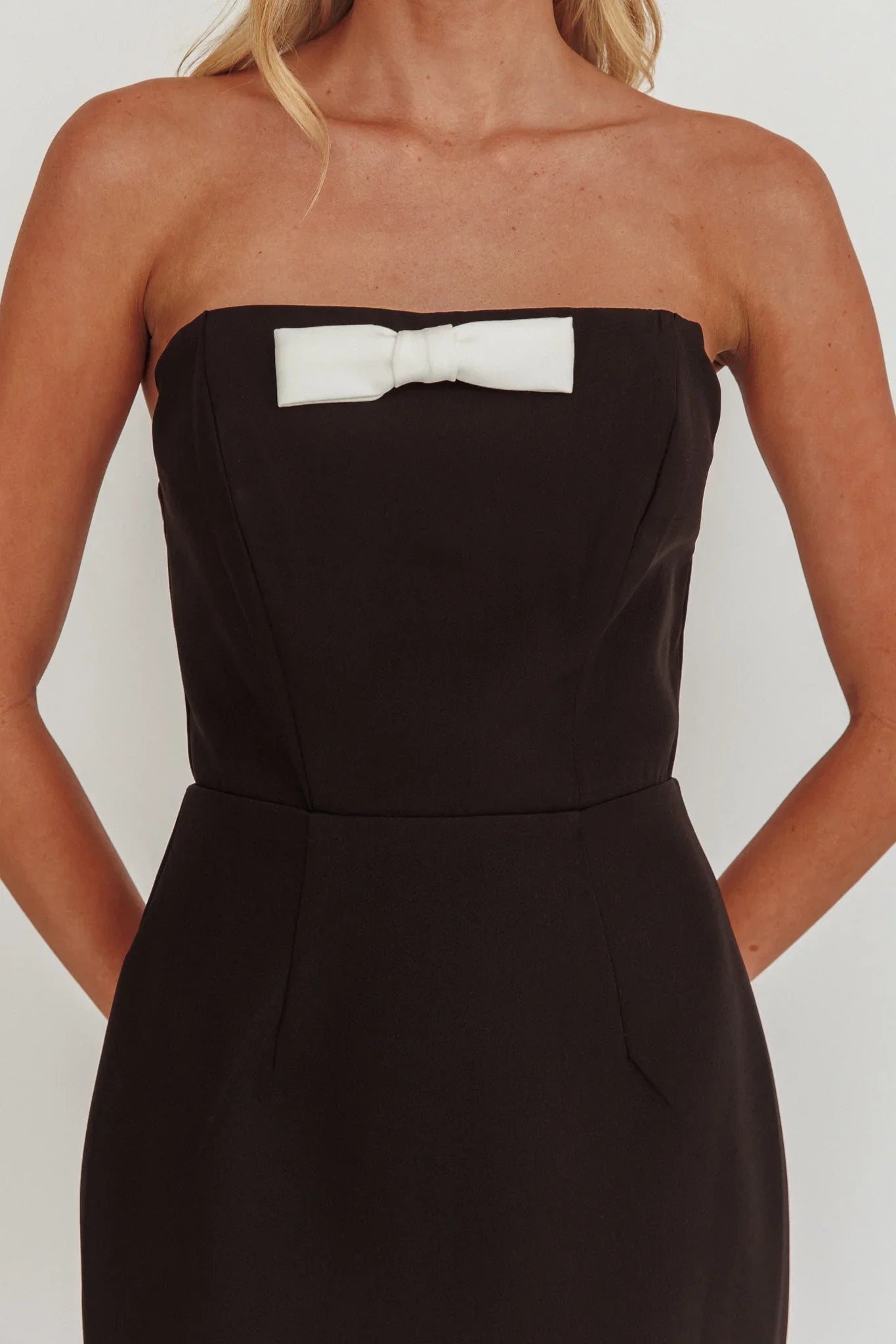 Make an entrance in our chic Cocktail Party maxi dress. It features a classic, strapless design and bow detail in the neckline. It's perfect for a birthday soiree or a special event. Team it with black heels and a clutch for a head-turning look.