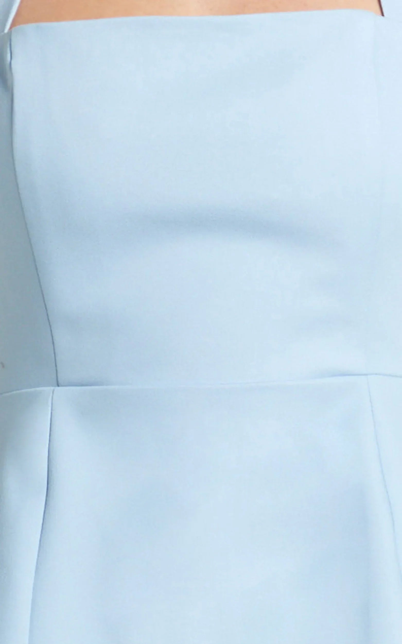 A halter neck tie flatters your shoulders while the tulip skirt brings playful movement and a flirty silhouette, perfect for cocktails, brunches or rooftop nights. The soft blue hue channels effortless cool-girl vibes that are everywhere right now.