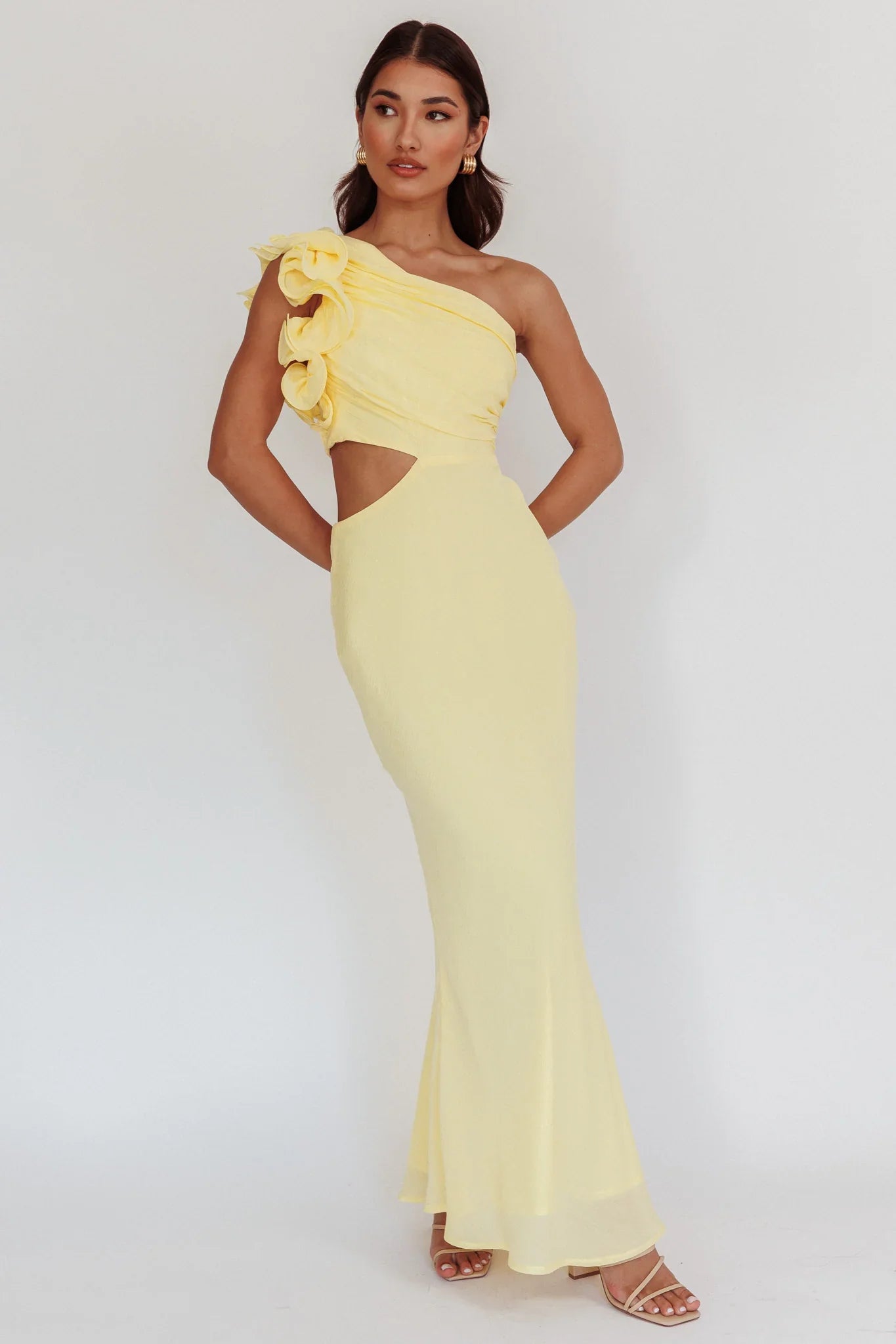 Make heads turn in our gorgeous Deanna maxi dress. It features a one-shoulder style with pretty ruffle detail. Wear it as a reception dress or special birthday dinner teamed with nude heels and a clutch for an unforgettable look.