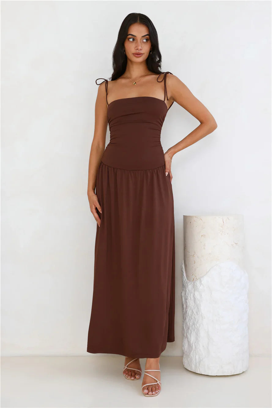 An effortlessly stylish silhouette you'll want to wear for every event. The Dream Strides Maxi Dress features tie-up shoulder straps and a flowy skirt. Style with heels for a look we love.