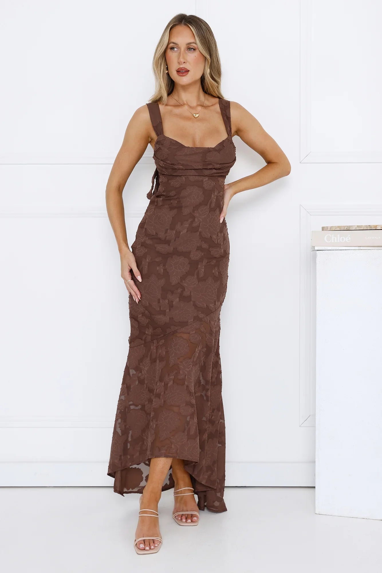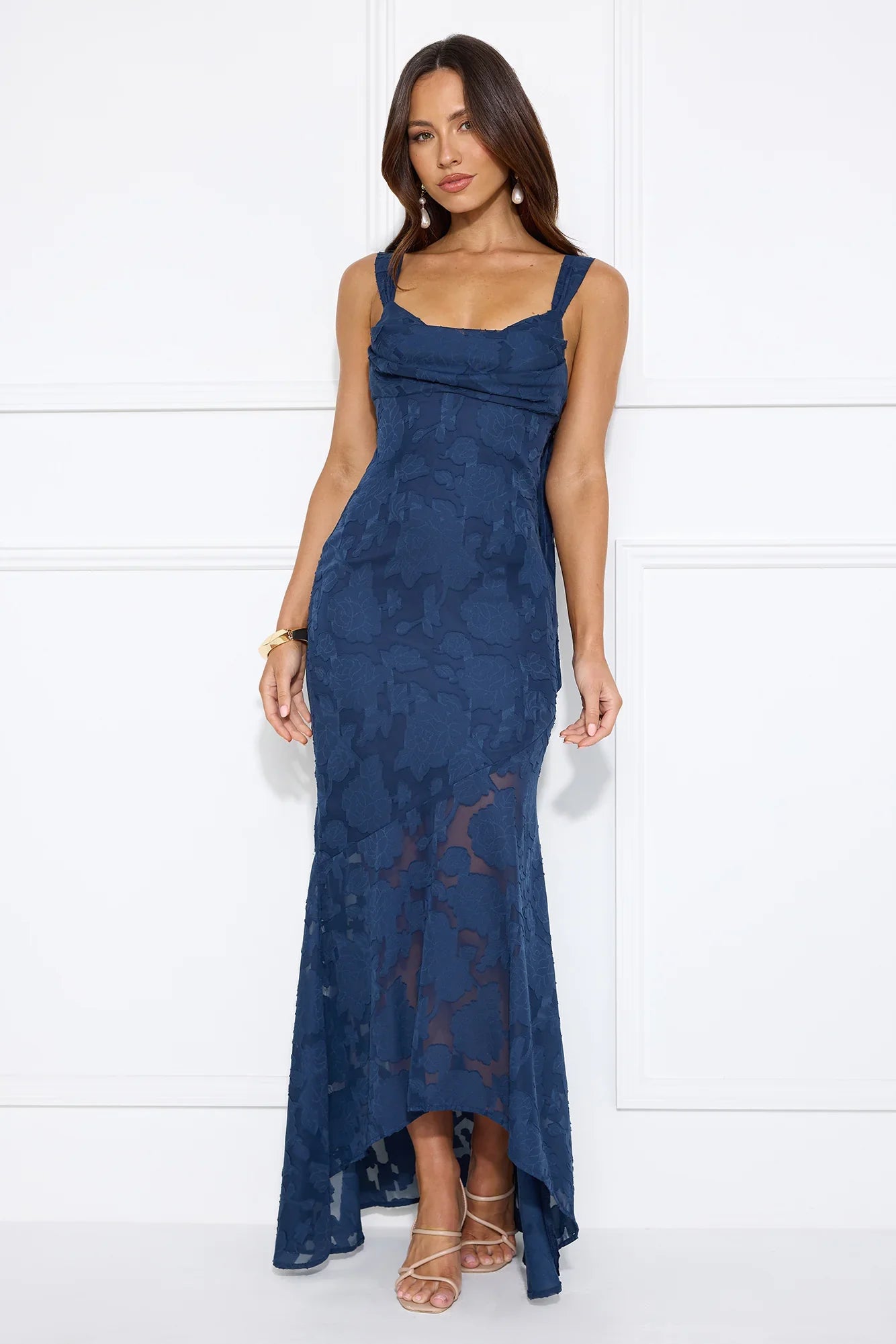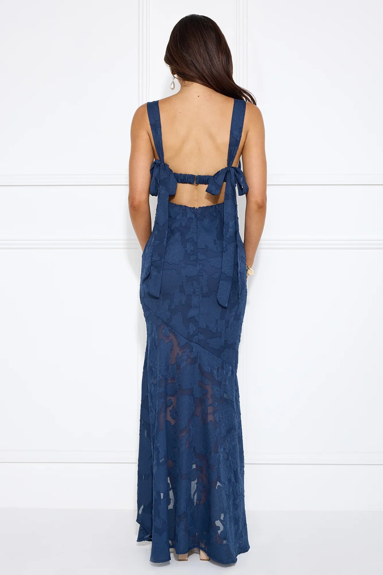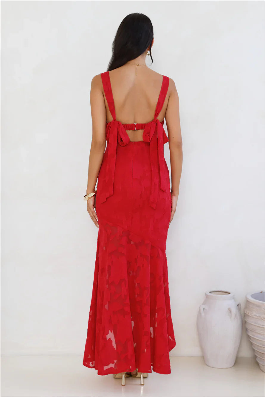A sophisticated style that's perfect for your next fancy event. The Enchanted Empire Maxi Dress features a gorgeous textured pattern, tie-up shoulder straps and an elastic back. Style with heels for all the love on your new 'fit.