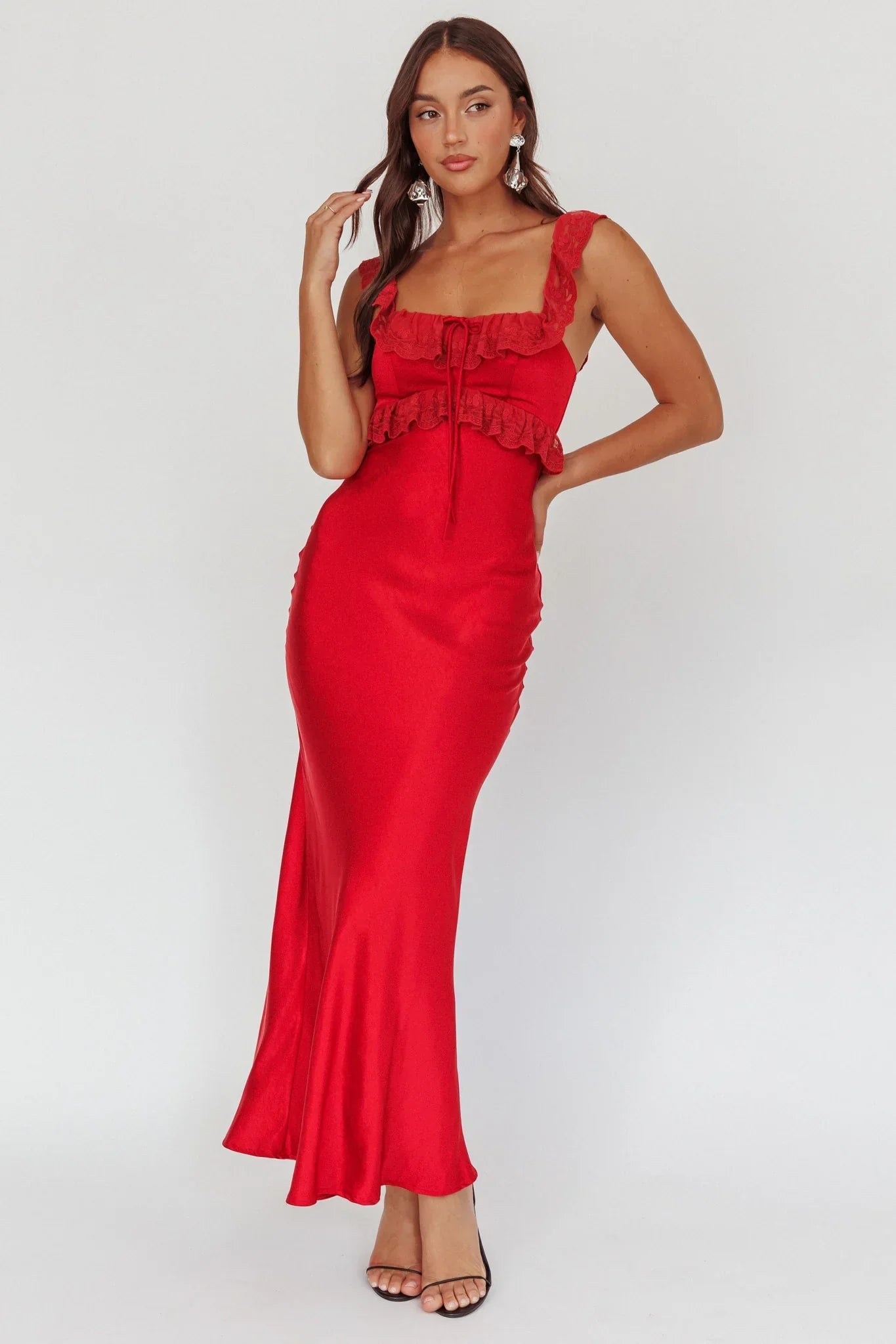 You will feel like a goddess in our stunning Escapade maxi dress. We are in love with its feminine lace trim detail. Perfect for a wedding or special birthday soiree! Team it with strappy, nude heels and a clutch for an unforgettable look.