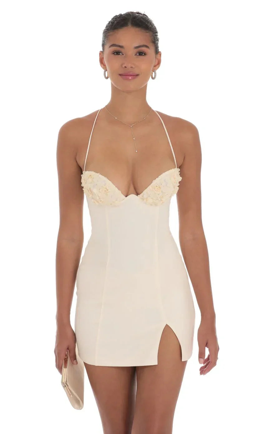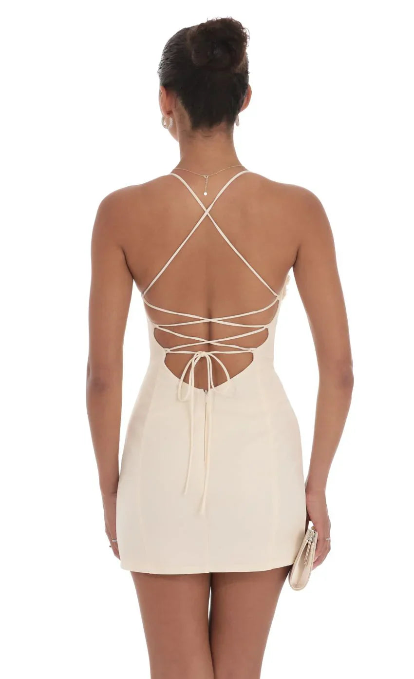 Designed in Los Angeles- Mini Length- Zipper back tie closure- Left side slit- Fully lined- Made in crepe fabric- Hand wash coldModel is wearing a size small that measures 31in/79cm in lengthSlight modifications might be made to improve garment quality.Handling the garments with care, hand-washing and air-drying is strongly recommended.