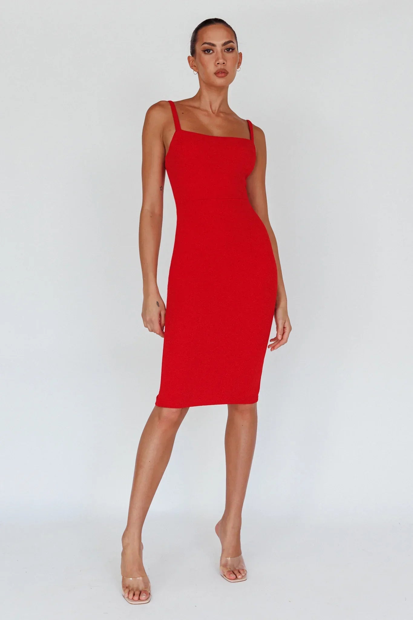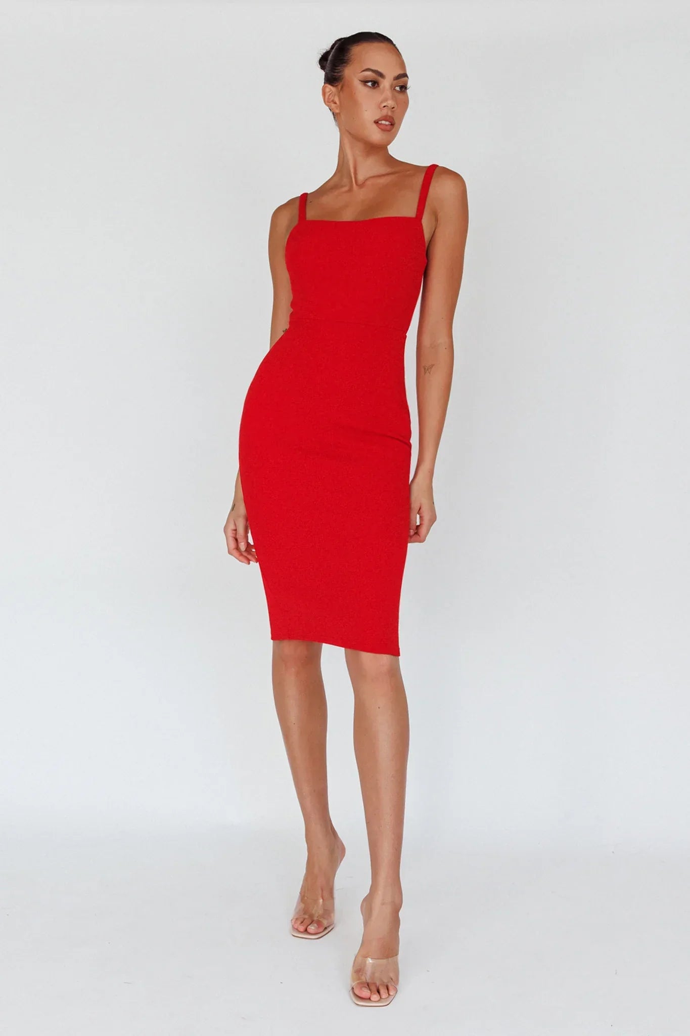 You are one classy gal in our simple but oh so chic Georgia dress. Featuring a flattering square neckline, invisible zipper in the back and demure midi length, this dress is perfect for work or after hours. Team it with nude pumps, a sleek high pony tail and blazer for a 9-5 look that says boss babe is here!