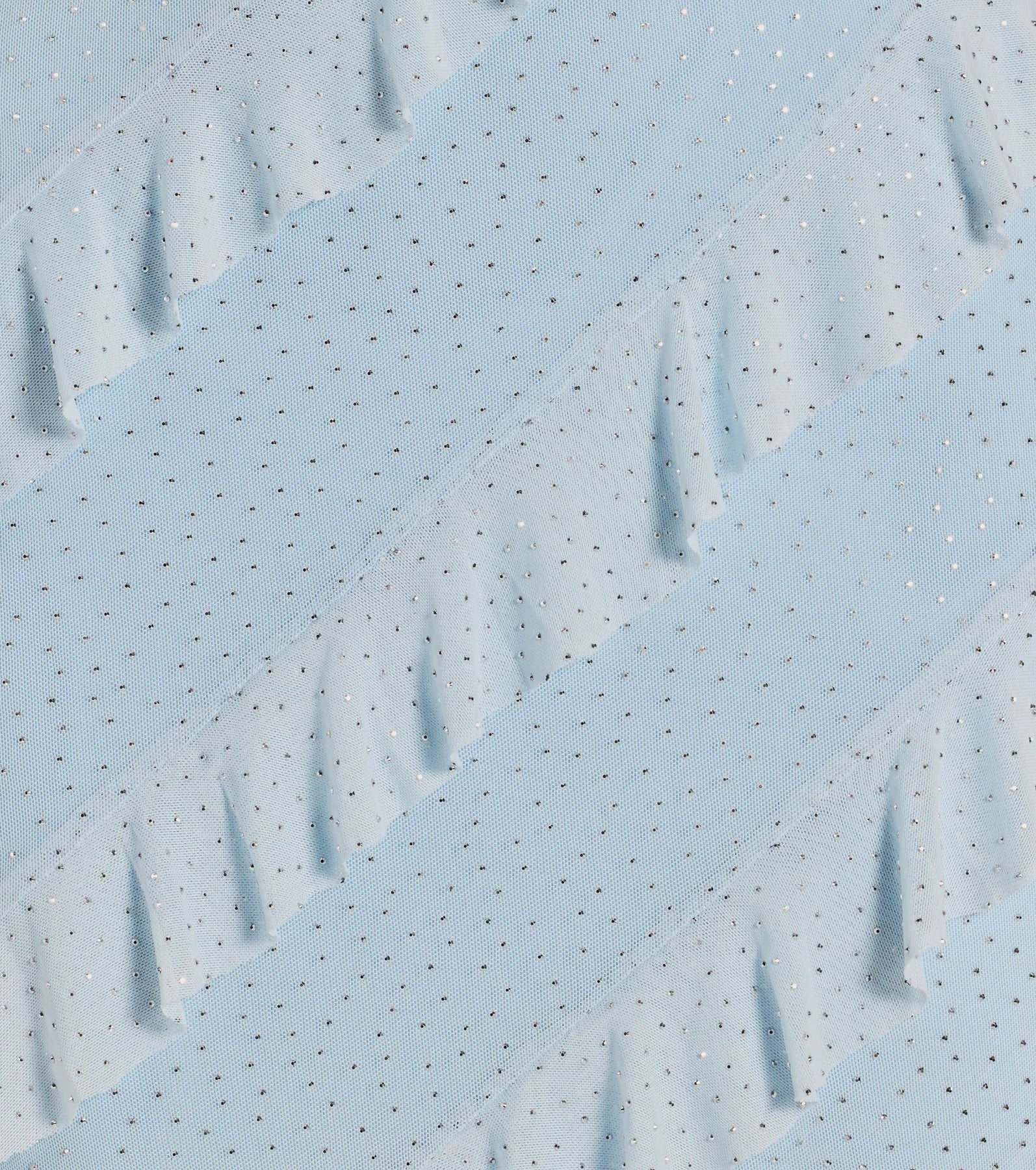 Look like a glitzy cutie in this rhinestone ruffled mesh mini dress at birthdays or semi-formal parties. Pair with block heels.