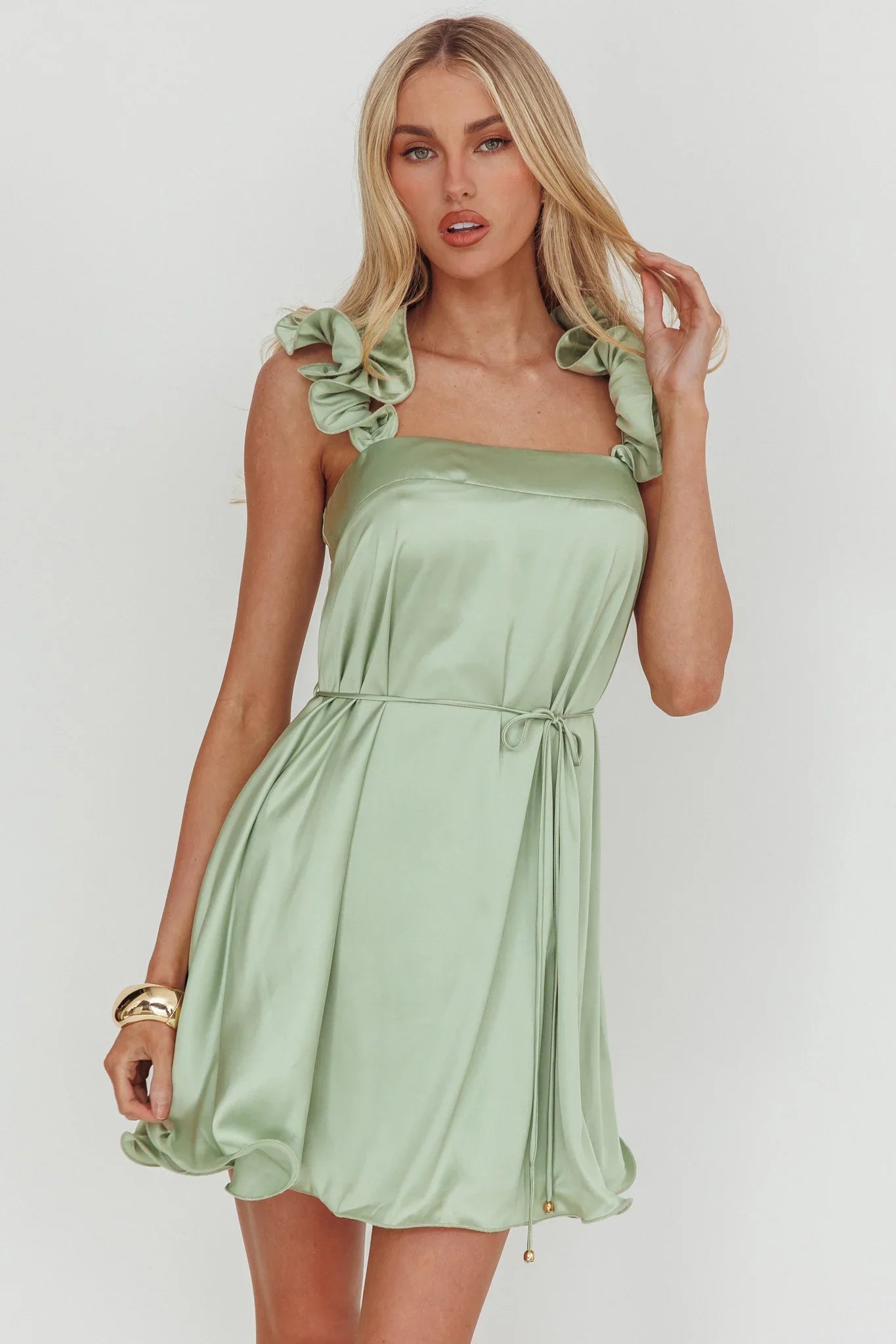 Twirl the night away in our gorgeous Glow mini dress. It features lettuce-edge ruffle straps and a tie around the waist. It's the perfect choice for a wedding or special event teamed with strappy heels and a clutch for a look that's fit for a princess.