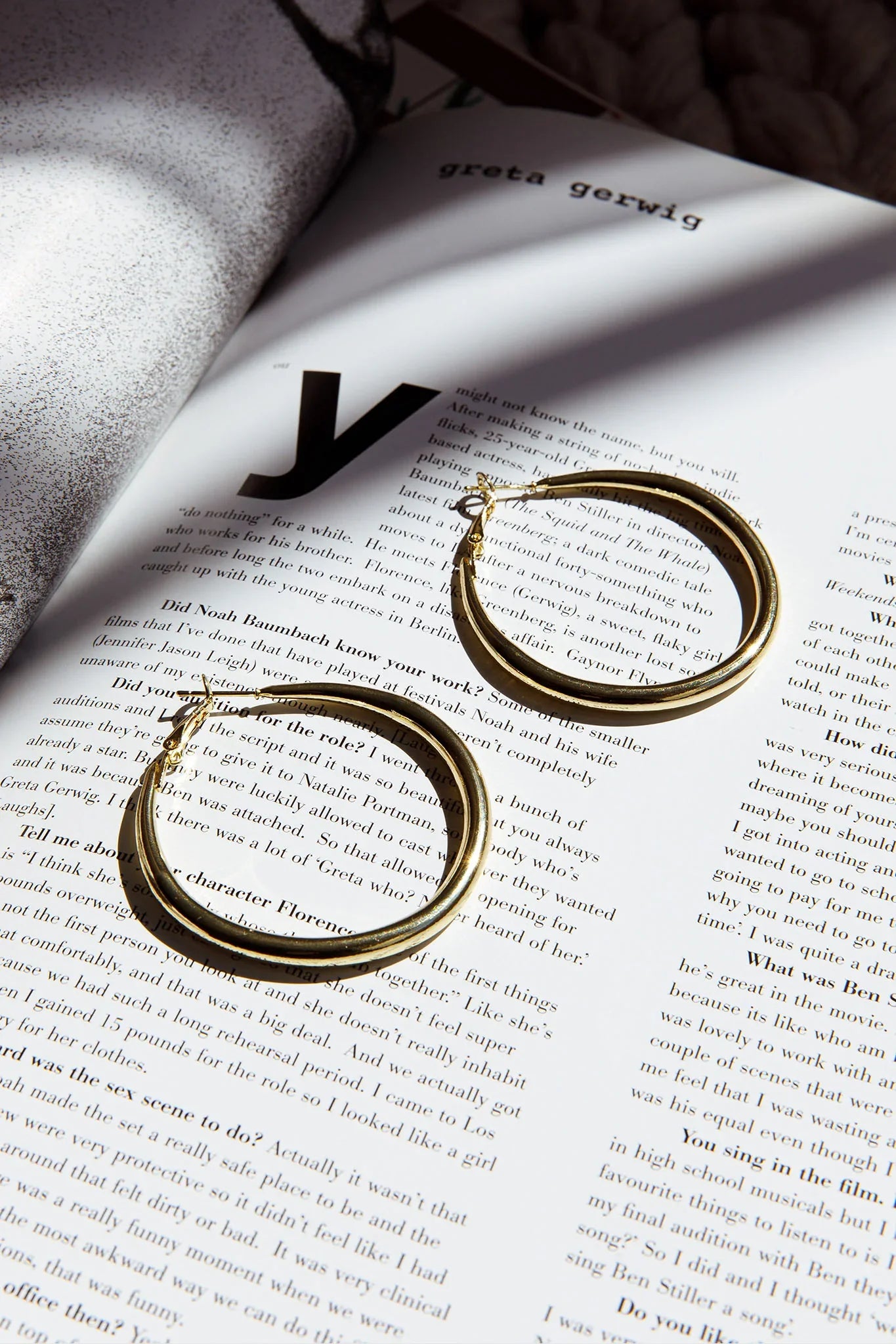 Channel your inner It Girl with our on-trend Hailey hoops. Featuring the iconic hoop style in a gold finish. Perfect for a girls' night out or a flirty date night. Team them with a vintage tee and mom jeans for a casual-chic look we are all about.