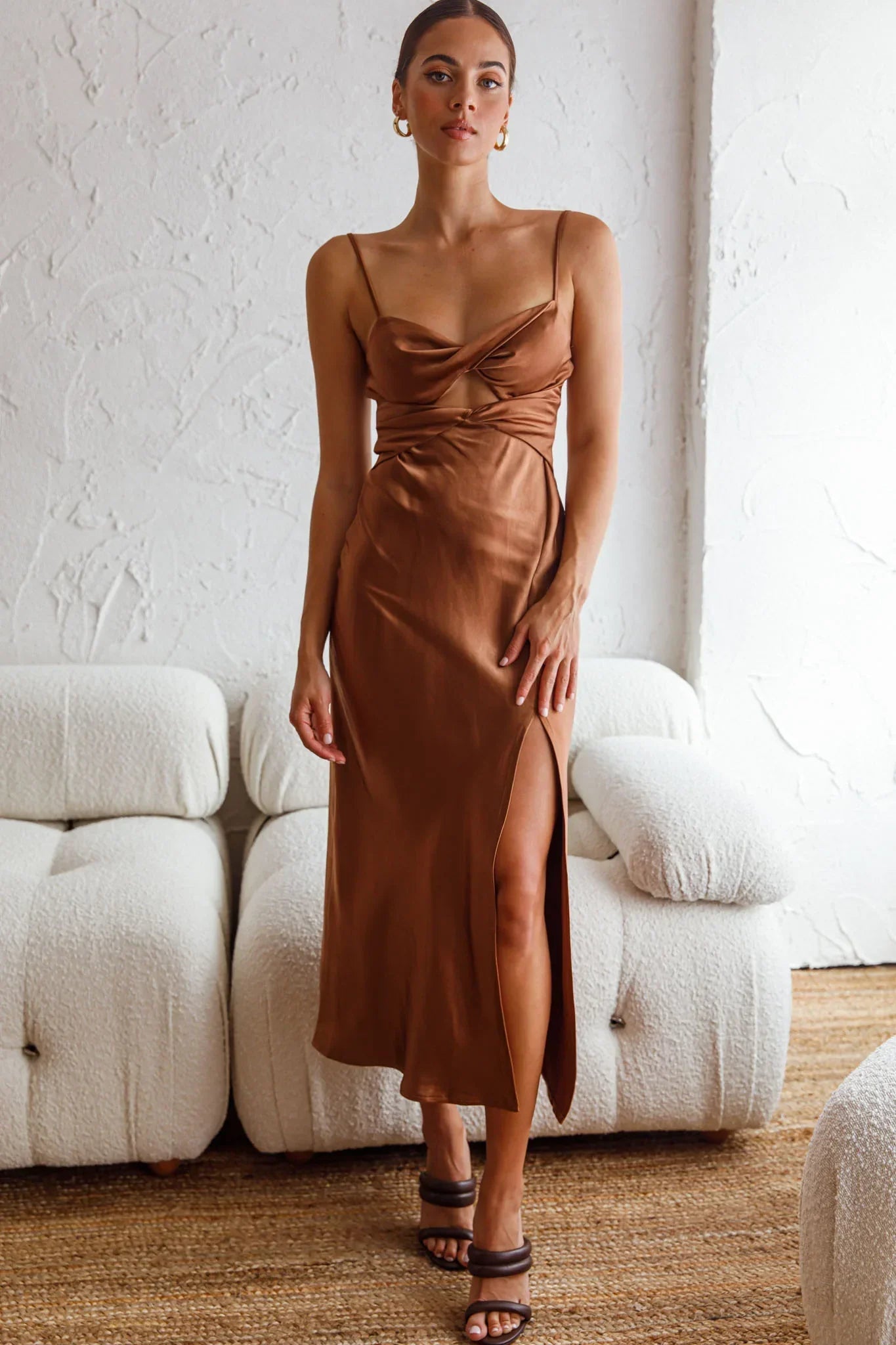 You'll be flooded with compliments in our Invite Only dress. We are majorly crushing on that sexy, twisted bust feature and silky fabric. Perfect for a girls' night out teamed with your fave high heels and gold statement earrings.