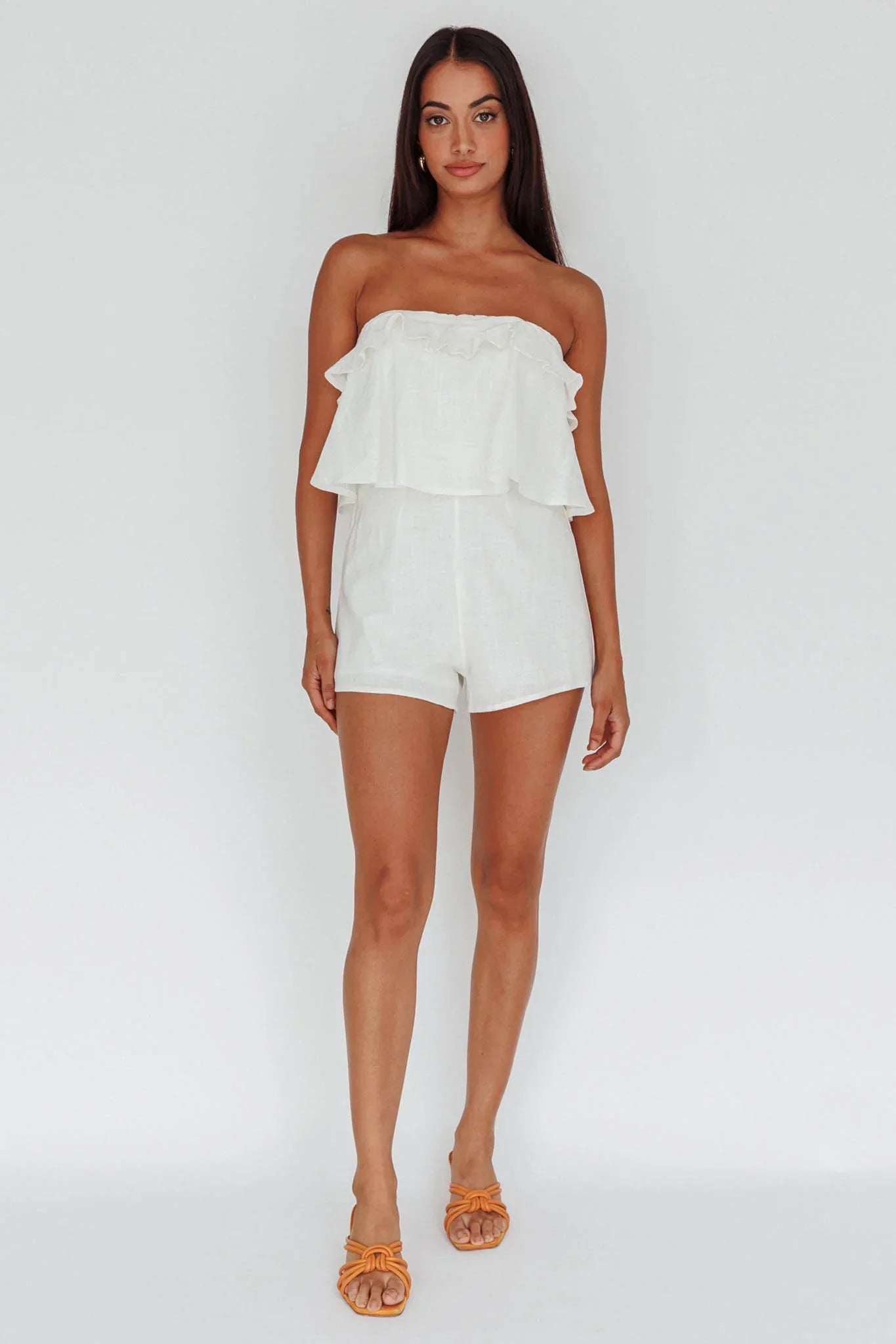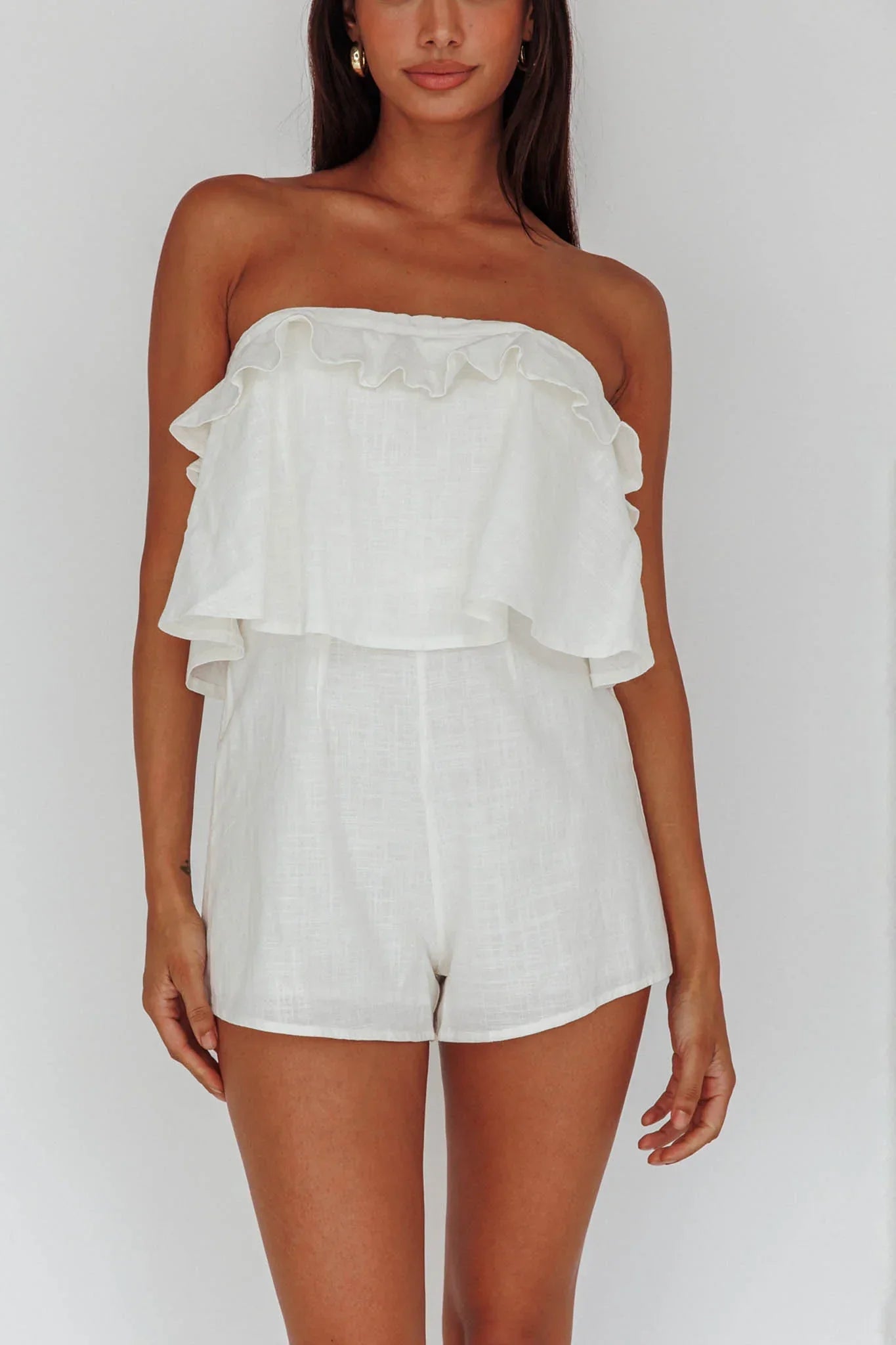 We're loving our Joey romper with it's super cute frill detail, bandeau style and tie-up back. So comfortable and Summer-chic, it'll have you dreaming of a Caribbean cruise vacay. Complete the look with canvas wedges and a woven tote for an ultra classy look.