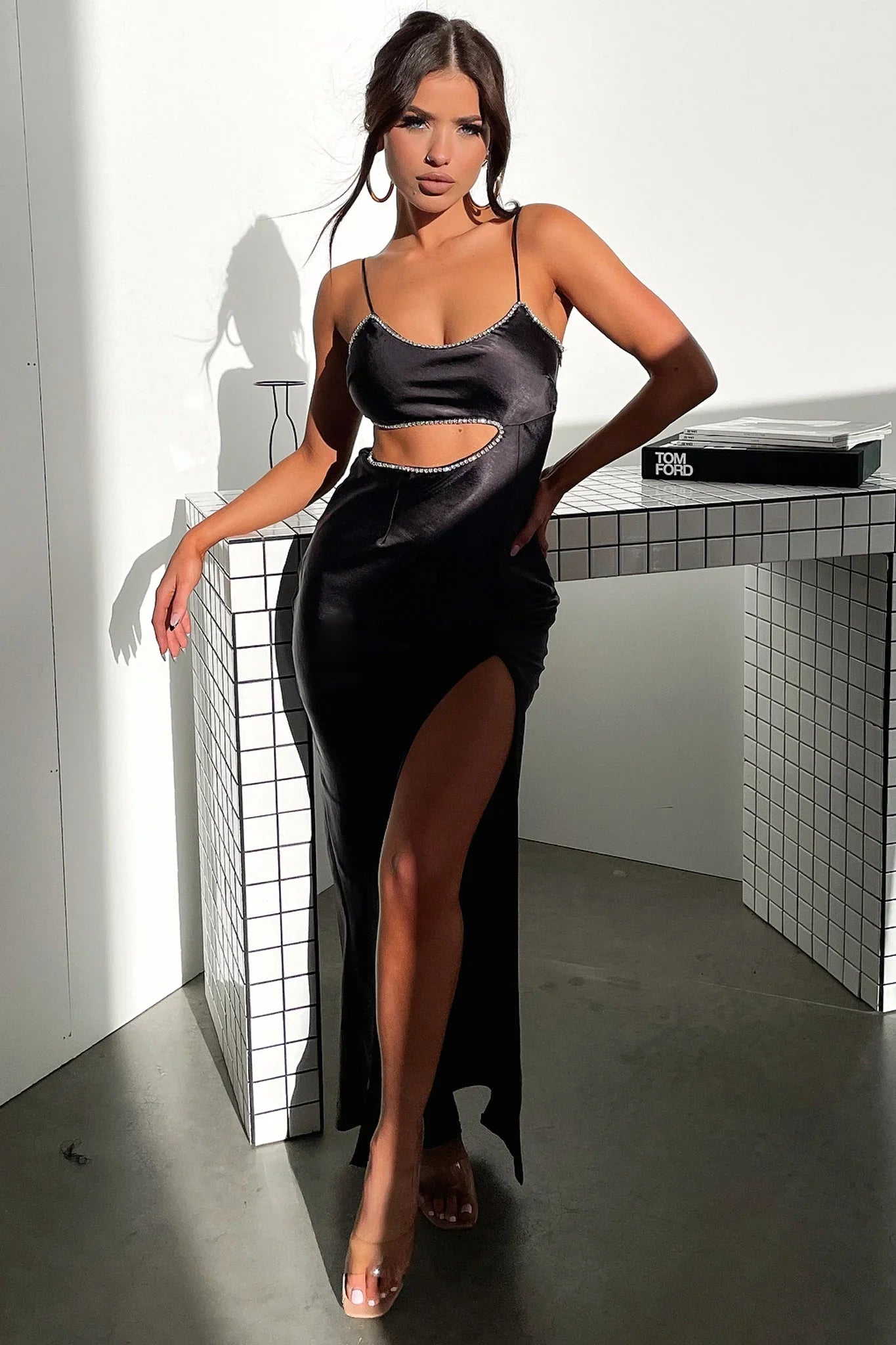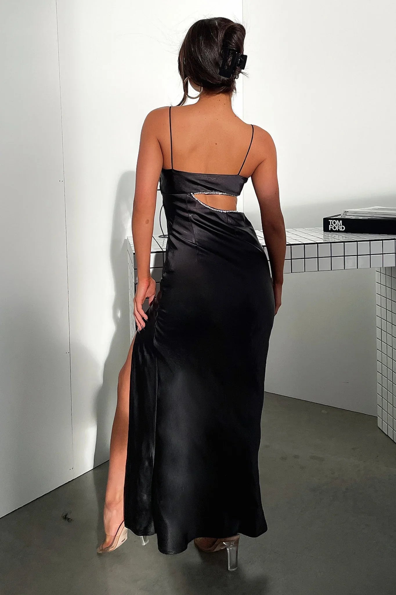 Keep it classy this formal season with the bang'n hot Kiara Maxi! She features a silky soft satin like material, double lining, thin spaghetti straps, an invisible side zipper and a cut out detail along the side of the waistline with a diamond embellished lining along the edges. Style her with black heels and a killer red lip for your formal date.