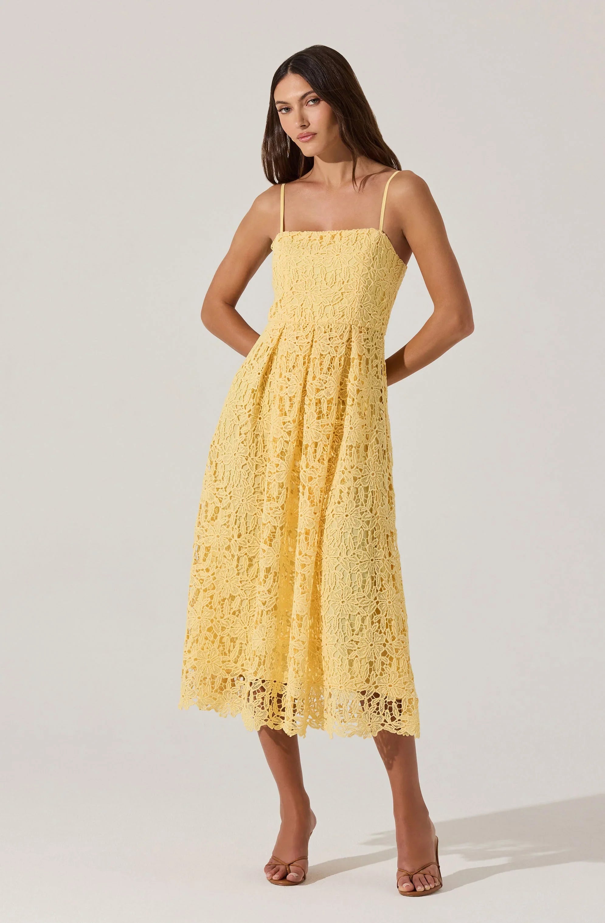 Flowery lace defines this delicate dress that's sure to impress at any event this season. From weddings to special events, this dress is made to turn heads. A must-have for every best dressed guest.