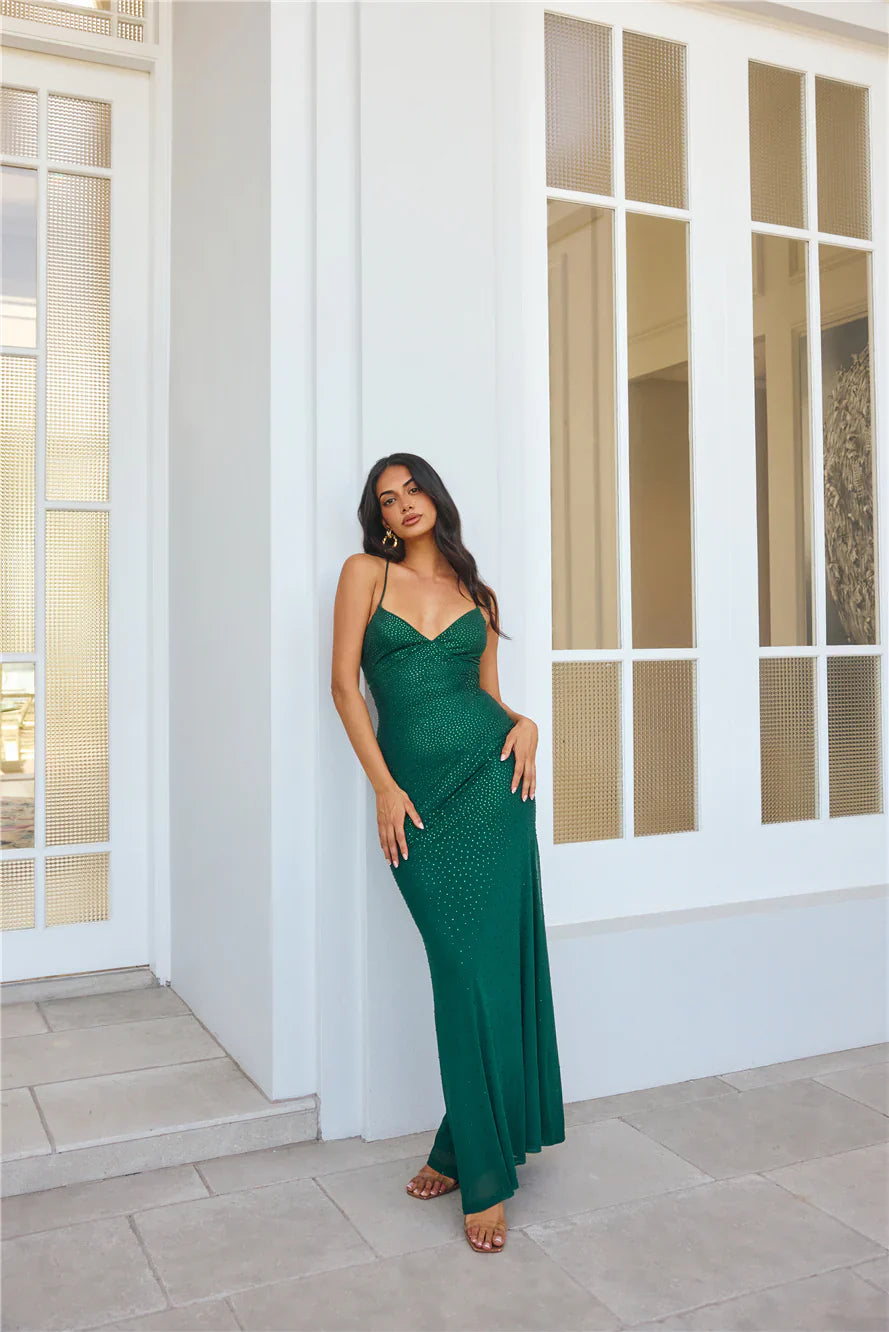 Want to make an extravagant entrance? Then, you'll need the Love From Kiki Maxi Dress. Featuring a gorgeous mesh silhouette with diamantes and a crisscross back. Style with heels and accessories to be best dressed.