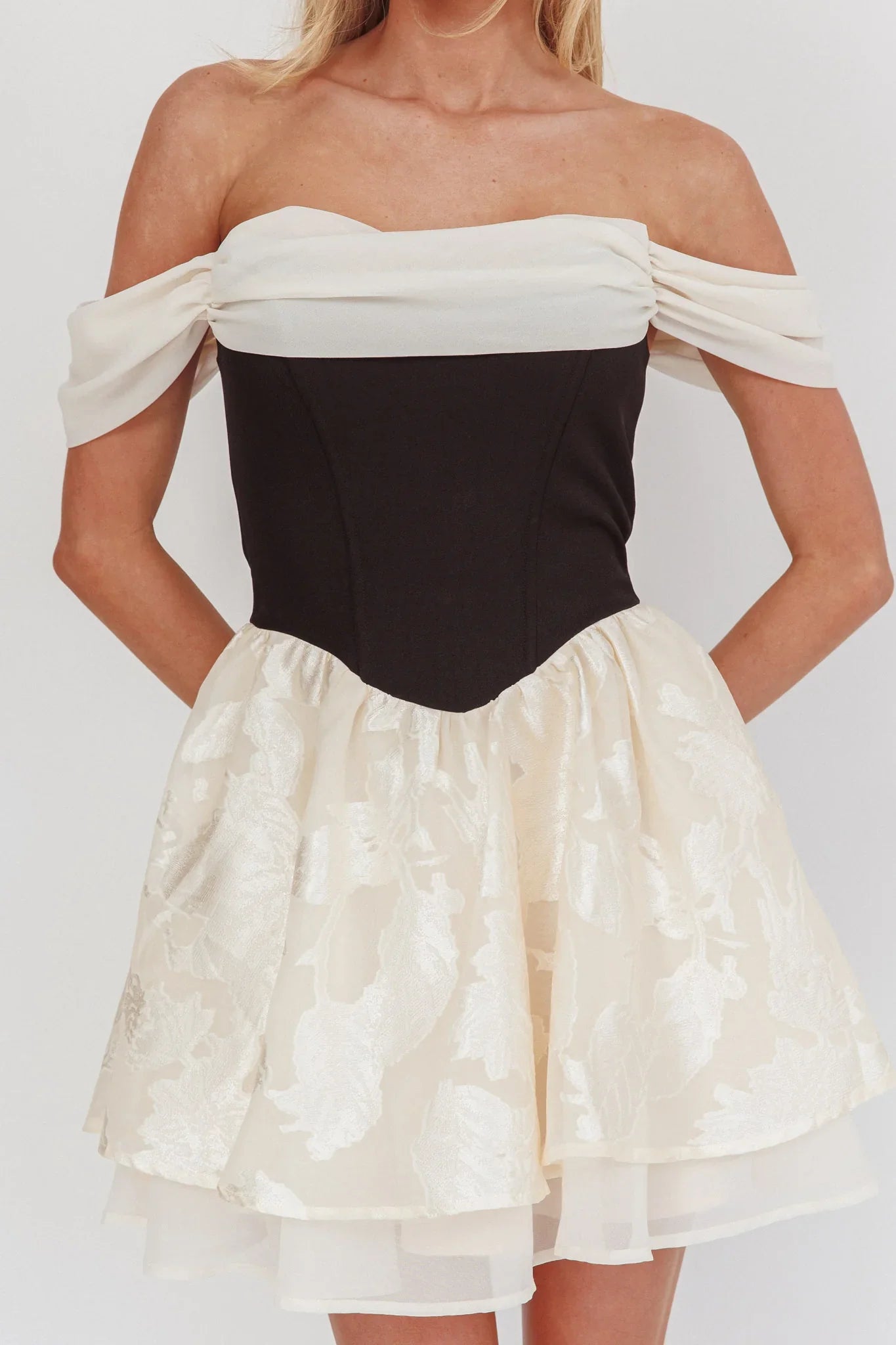 Embrace your inner royal with our Lusting mini dress. This dress redefines sophistication with its regal jacquard fabric and flattering off shoulder straps. Perfect for both day and evening wear, this dress effortlessly transitions from glamorous nights out to romantic dates.