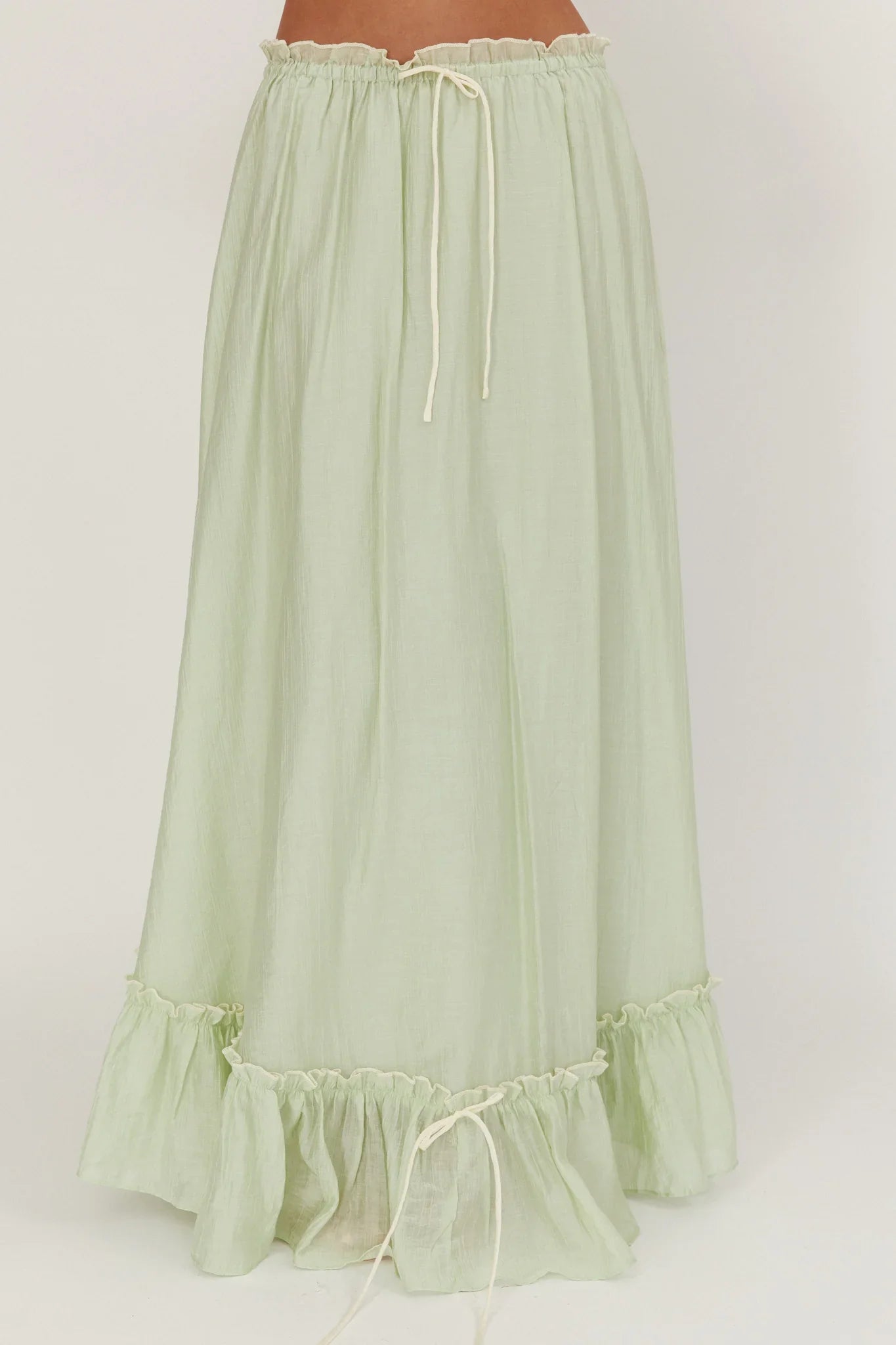 Hello, sunshine! You will steal the show in our super cute Maidens maxi skirt. Featuring contrasting overlock stitching and tie in the hem. It's perfect for weekend brunch with your besties teamed with sandals and its matching top for a dreamy look.