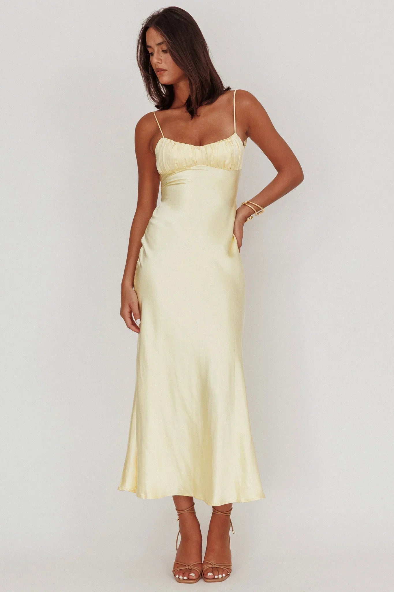 Float through your day in our gorgeous Nerida maxi dress. Featuring gathering detail in the bust and a low back with twist feature, it's perfect for Sunday brunch with your girls! Team it with strappy heels and a baguette bag for a look we are loving.