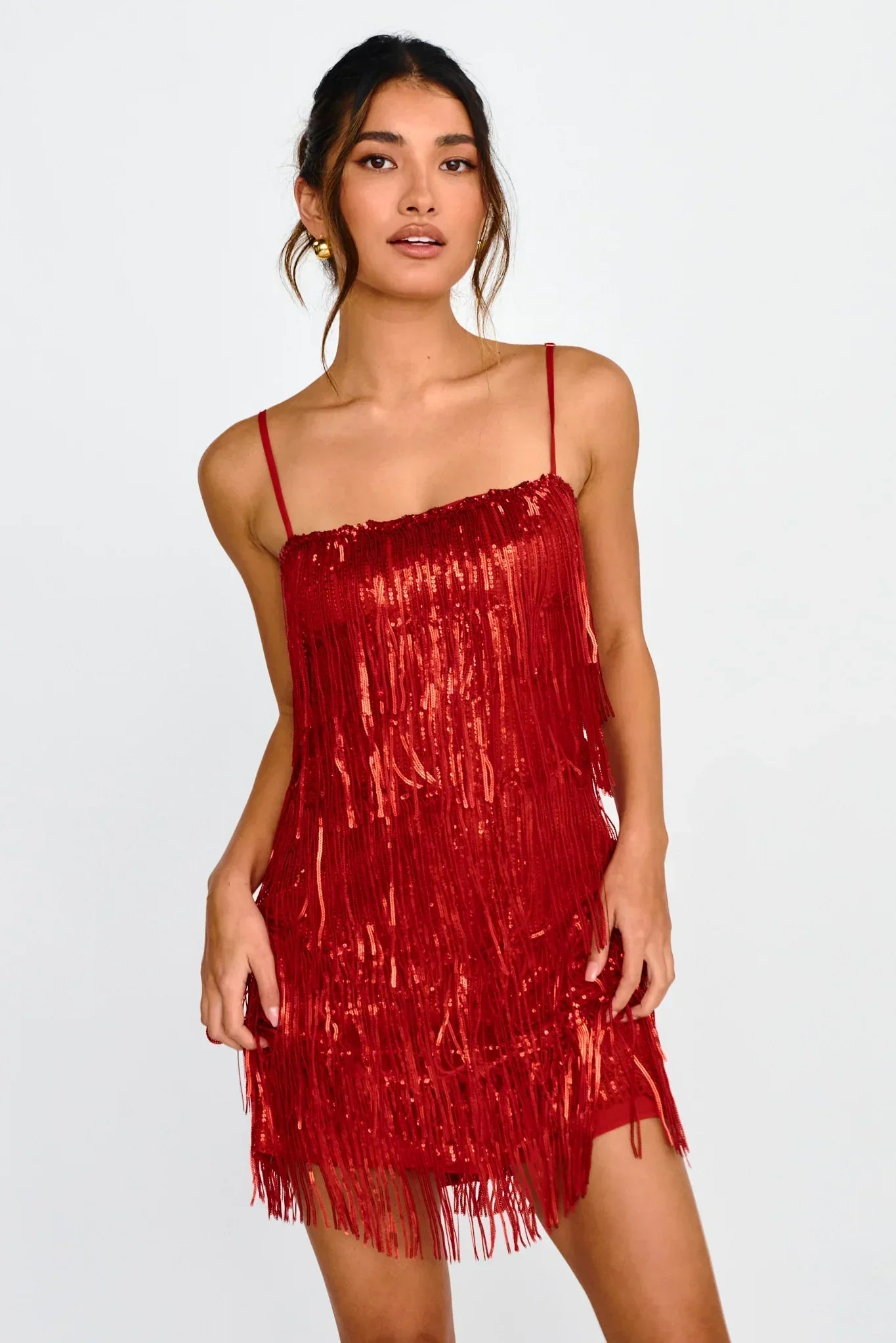 Steal the spotlight in our stunning New York Nights mini dress. Featuring layered, sequin fringing throughout, it's perfect for a holiday party or dazzling on the dance floor on a night out with your besties! Team it with silver heels and a clutch for an unforgettable look.