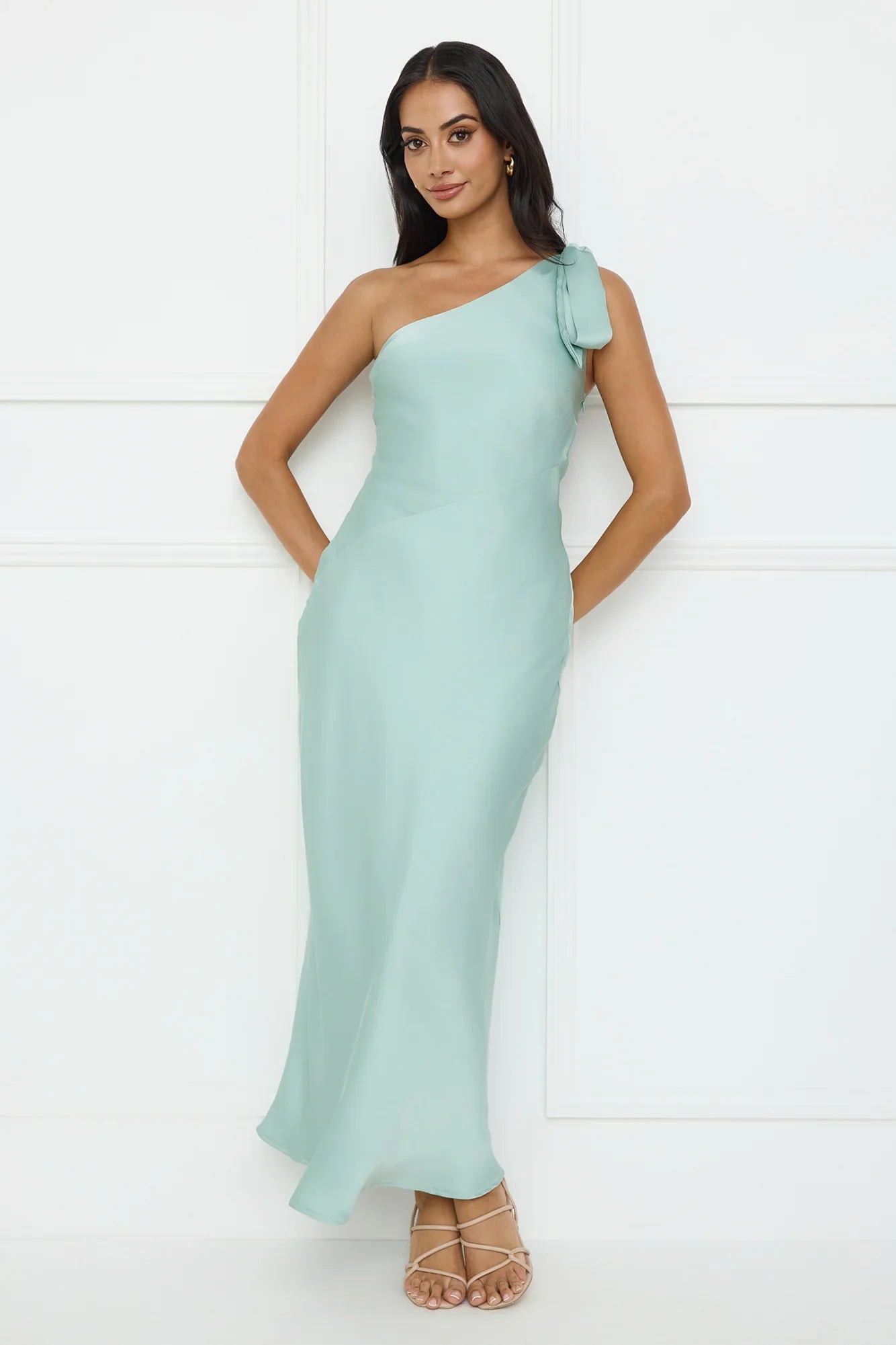 The Night of Distinction One Shoulder Satin Maxi Dress is the epitome of elegance, featuring a one-shoulder tie design, satin fabric that drapes beautifully, and a straight, flowy skirt that moves gracefully with every step. Perfect for an evening of sophistication and style. Pair with heels and sparkly accessories.
