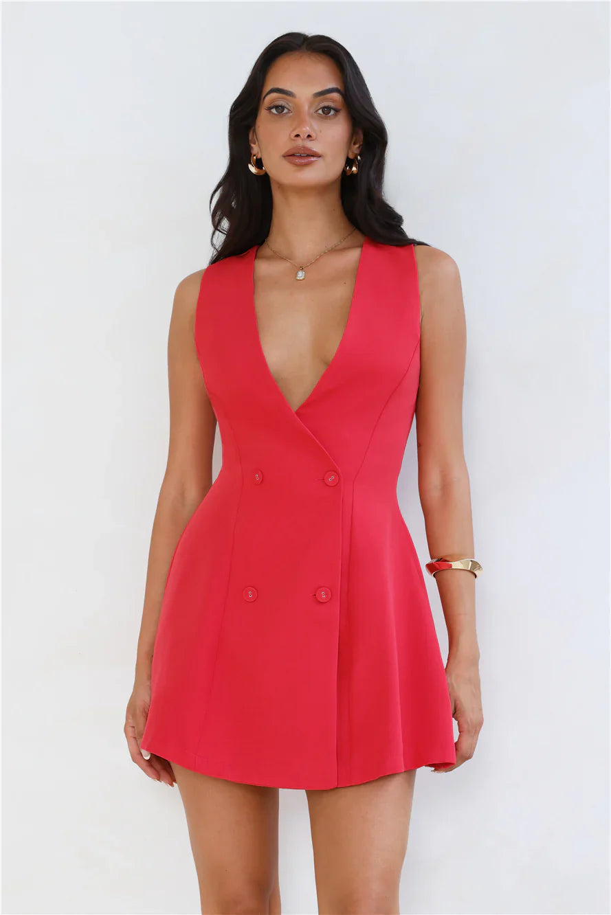 Elevate your work closet with the Office Chic Tailored Mini Dress. Featuring a button front and a tailored silhouette. Style with heels for a 'fit we love.