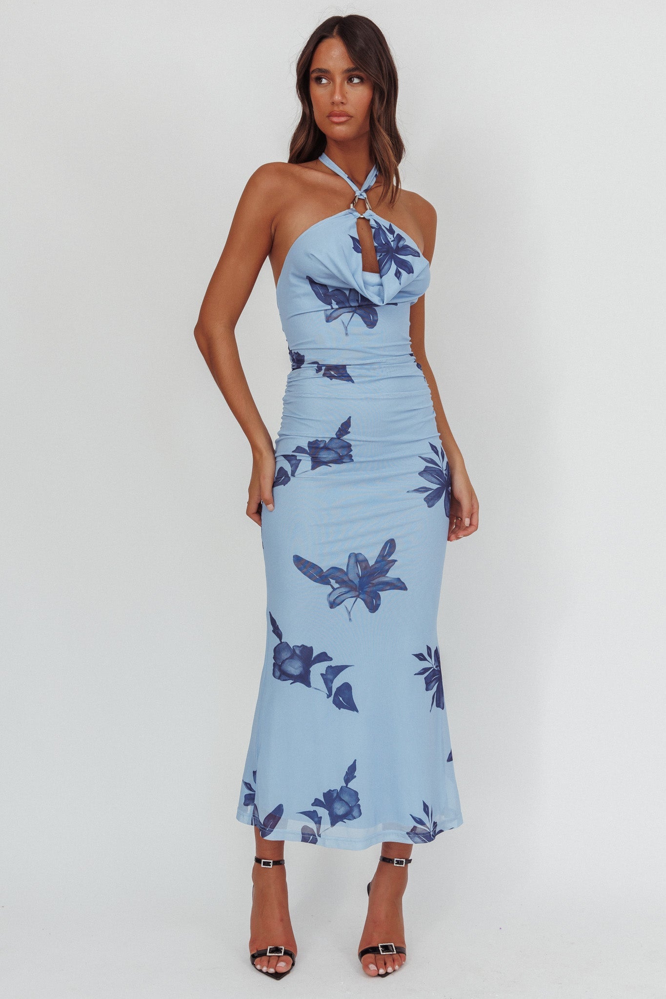 You will stop the show in our pretty One Night maxi dress. It features a halter design and metal hardware decoration in the neckline. It's perfect for a glam birthday dinner with your girls teamed with nude heels and a clutch.