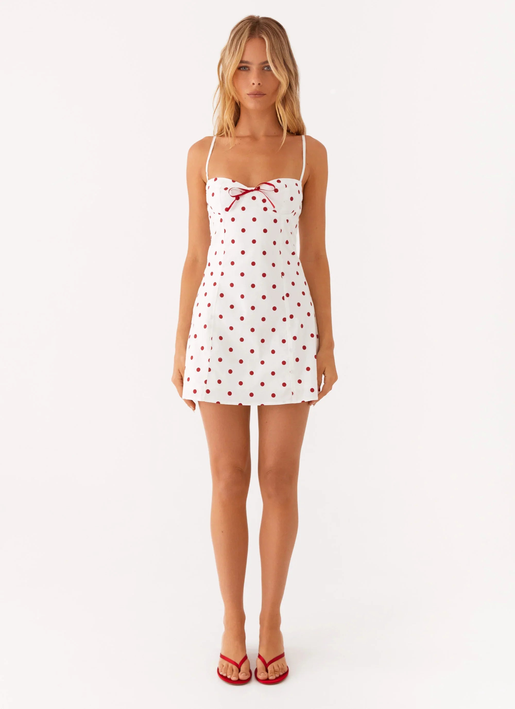 Flaunt your style with the Perla Mini Dress. featuring thin adjustable straps that offer a personalized fit and a stunning low back for added allure. The charming front tie detail enhances its playful vibe. making it perfect for sunny days and casual outings.