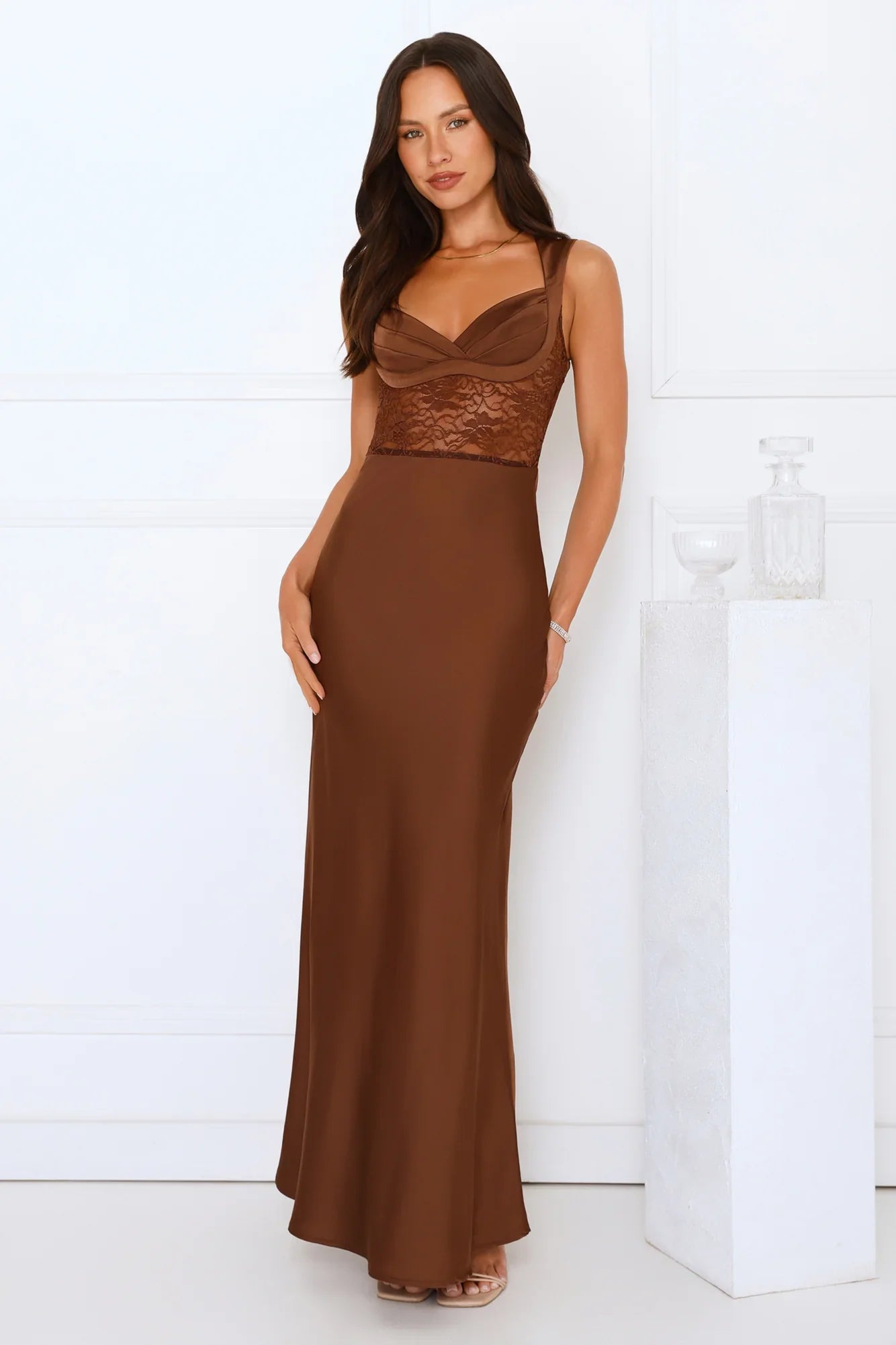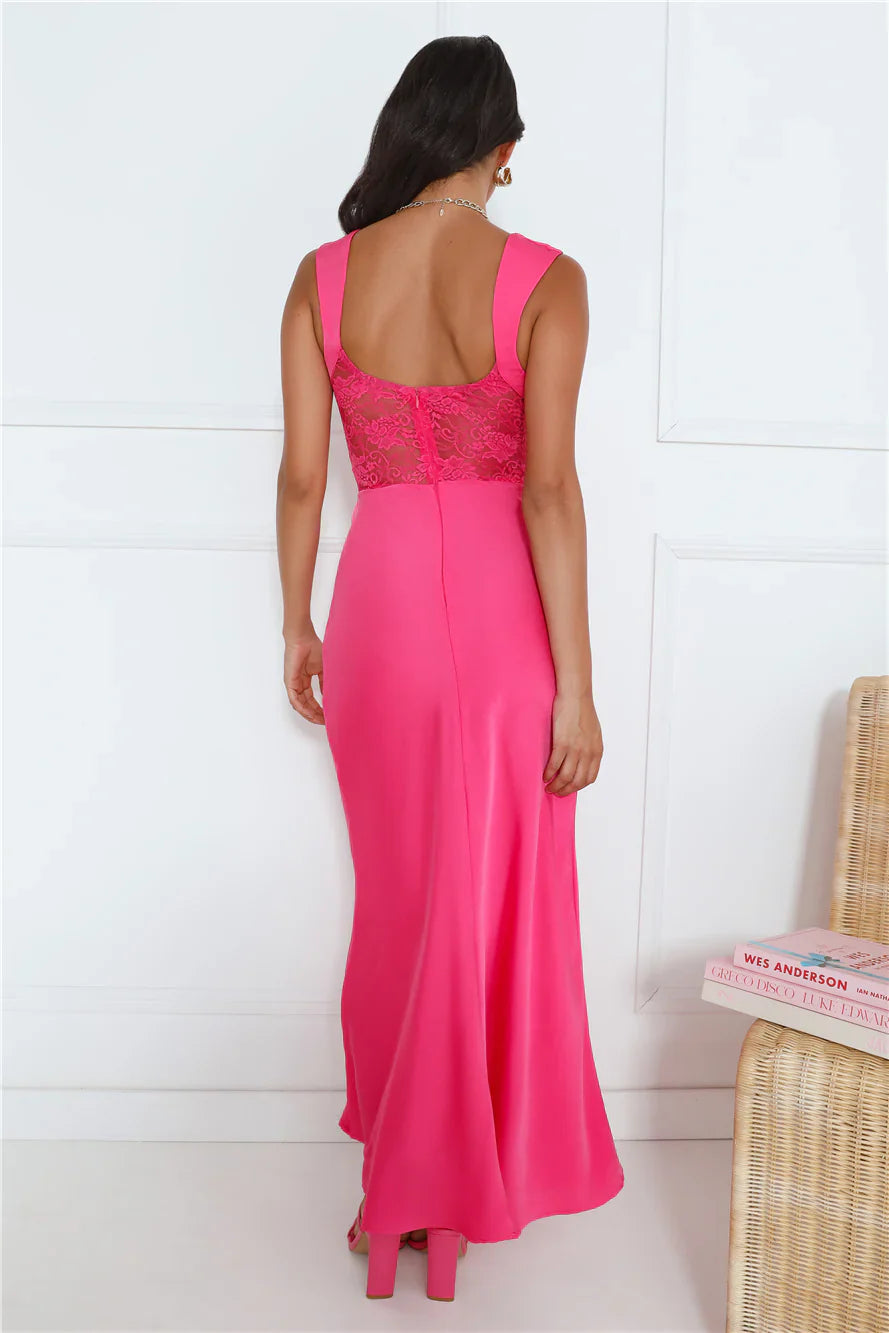 You'll look amazing in the Permission To Party Satin Maxi Dress. Featuring a gorgeous lace bodice and a straight, flowy silhouette. Style with curls and heels for all the likes.