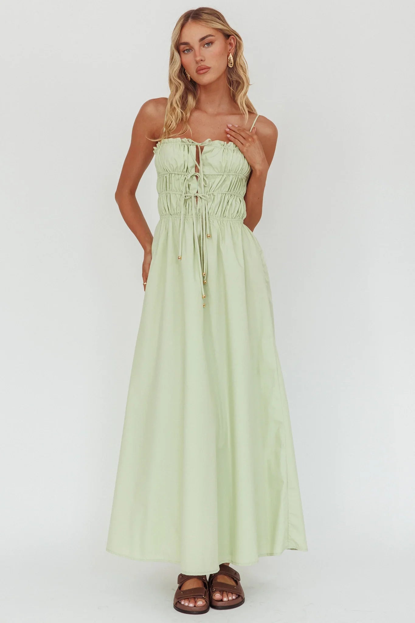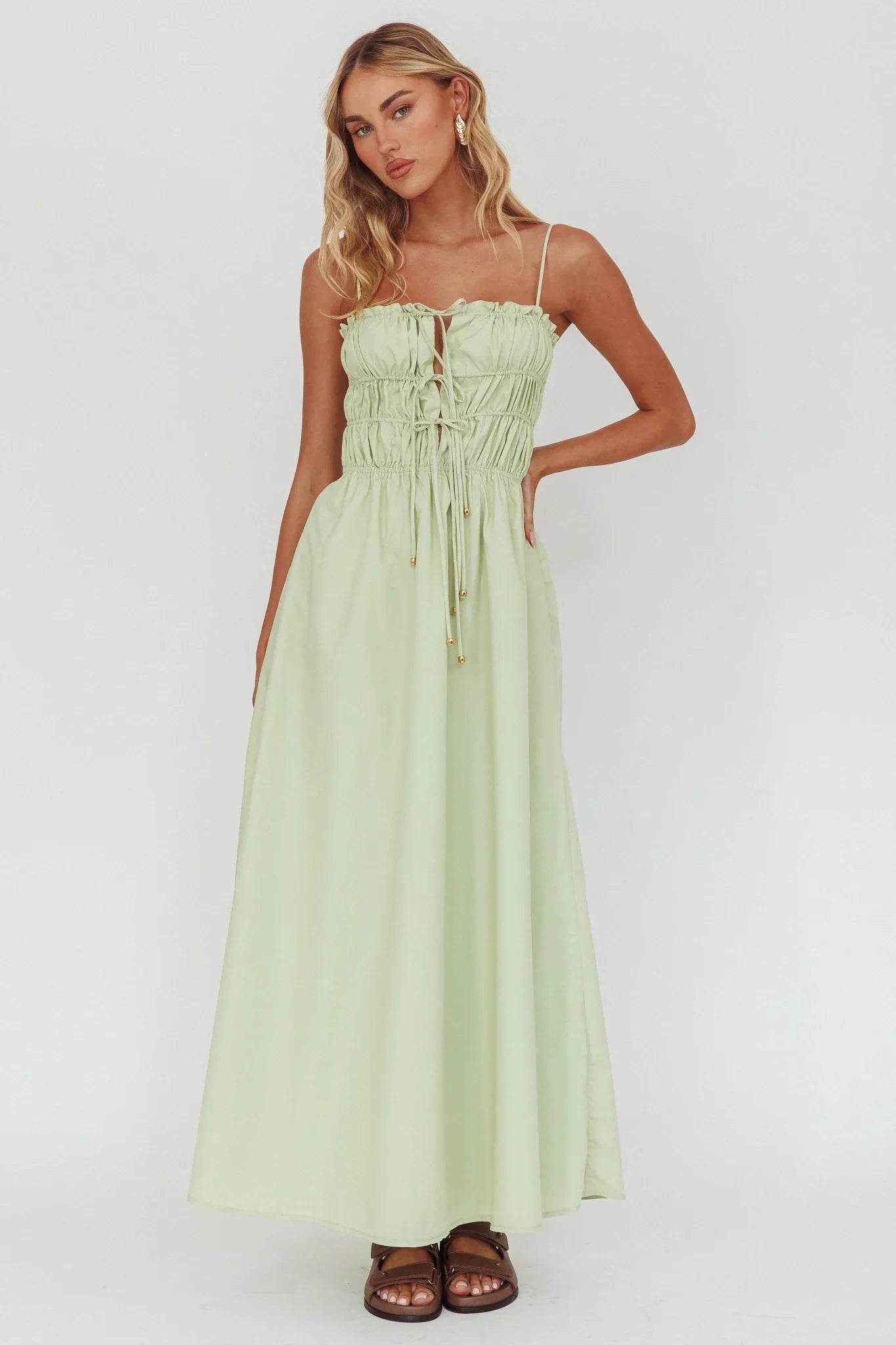 Float through your weekend in our breezy Remember When maxi dress. It features ties in the bodice and a shirt back and is perfect for coffee dates with your girls teamed with a tote and sandals for a super chic look.