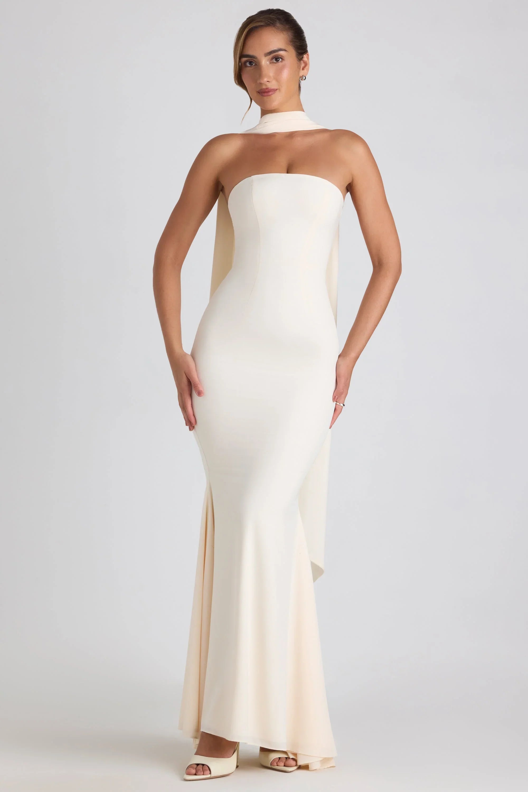 A forever classic. Designed to be worn at galas or memorable receptions, the Imogene gown is crafted from lightweight georgette that skims your curves and features a stunning fishtail skirt that creates the illusion of a structured hourglass shape. It’s finished with a bandeau neckline, secured with silicone tape, and comes complete with a coordinating scarf that can be styled to create multiple looks.