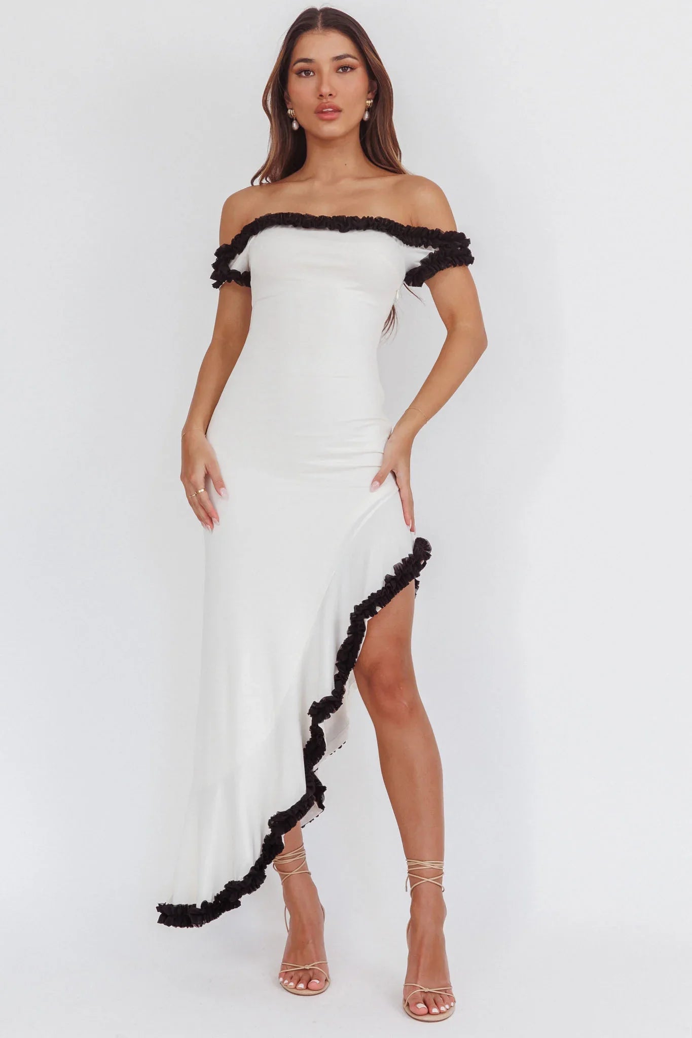 Steal the show with our pretty Shake It Off dress. Featuring a frill trim and off-shoulder design, it's perfect for a birthday celebration! Team it with strappy heels and a purse for a look that's fit for a princess.