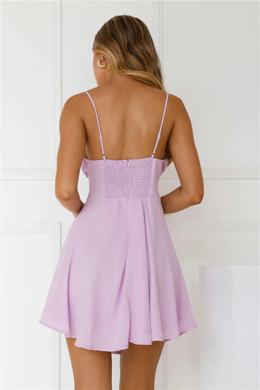 We're in love with the Smile Back At Me Mini Dress. Featuring a gorgeous bow with a frill detail and a flowy skirt. Style with heels and curls for all the attention.