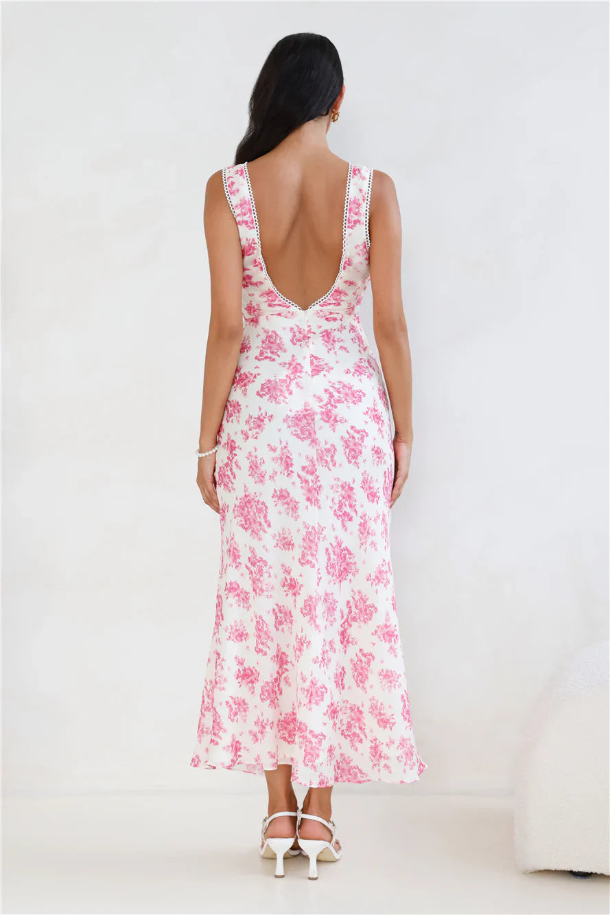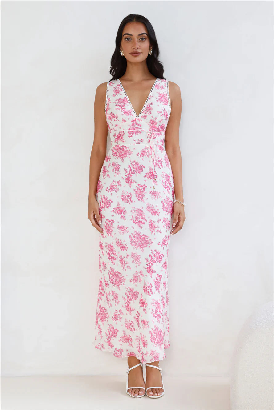 You're going to love the fit of this dress, lovely. The Soft Florals Maxi Dress features a gorgeous blue print, a straight, flowy skirt and a waist tie. Style with heels and curls for all the likes.