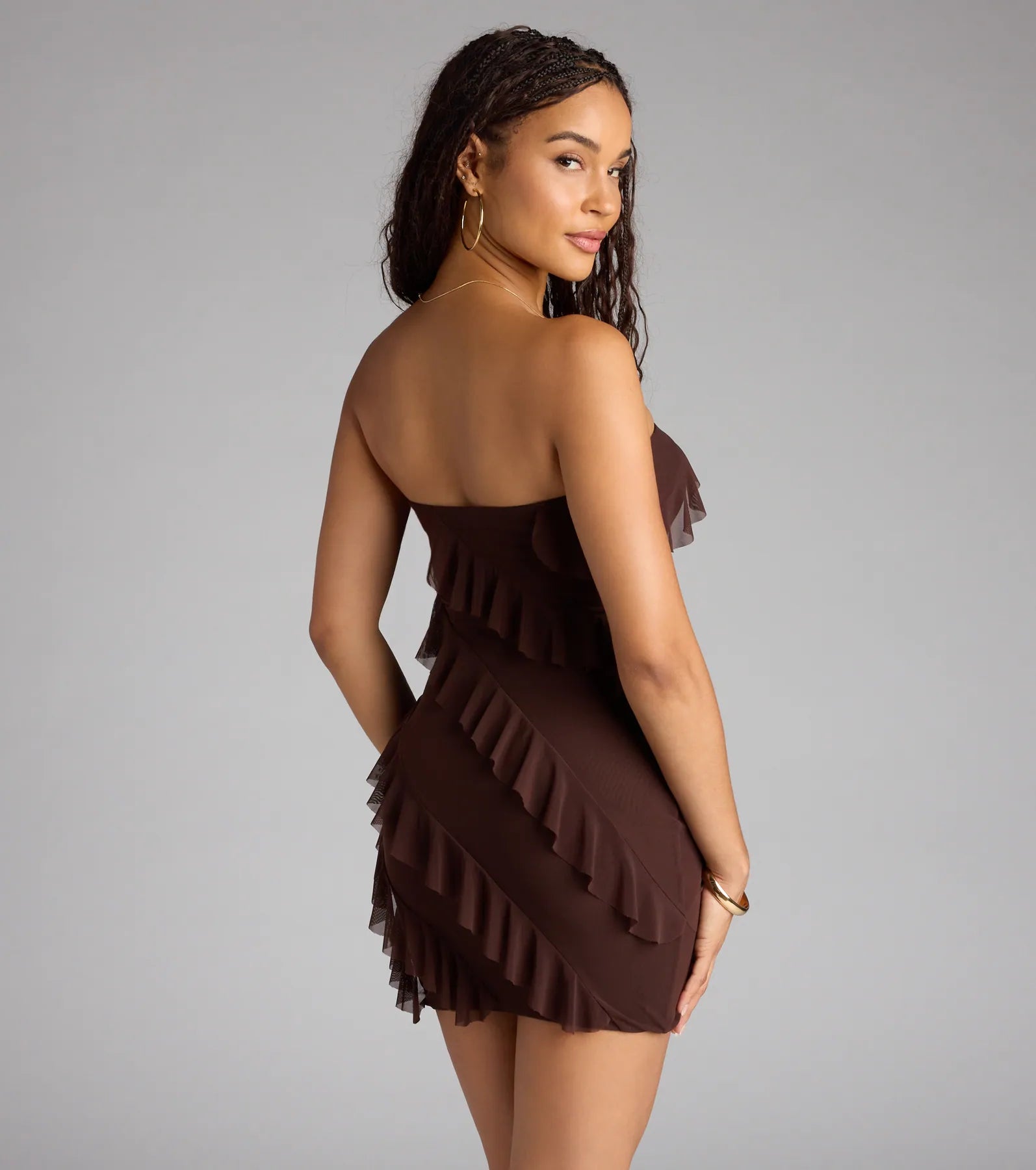 This dress? It didn't come to play—it came to sizzle. With bold ruffles and a curve-loving fit, this mini tube dress is your go-to for dance floors, date nights, and everything that deserves a little heat.