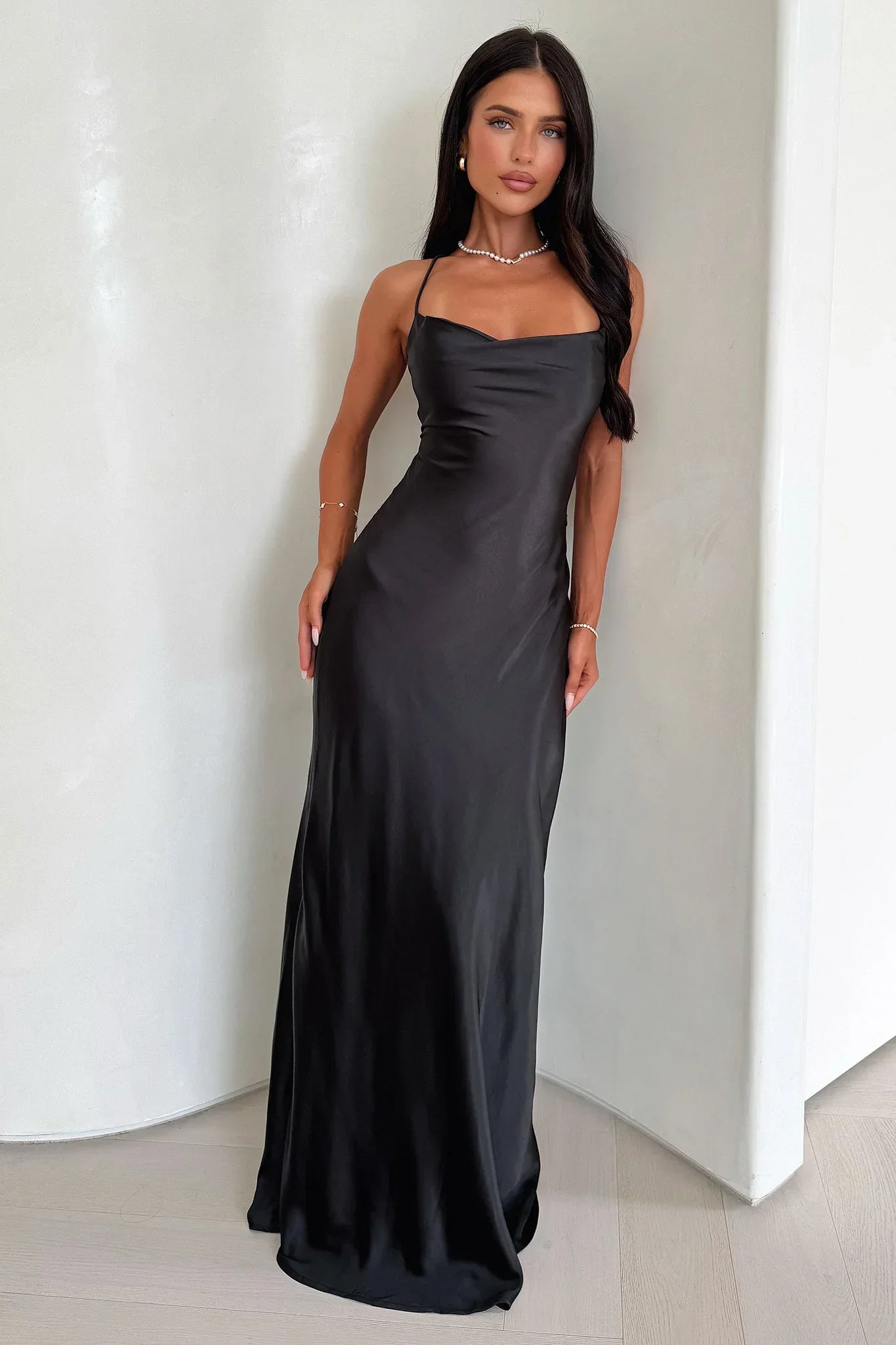 Be the star of the show in our effortlessly chic Starlette Cowl Neck Satin Maxi Dress! Crafted from luxurious satin fabric, this maxi dress features a flattering cowl neckline and thin shoulder straps. The adjustable tie up back adds a touch of uniqueness while the soft fabric ensures comfort. Perfect for any formal occasion, pair with your favorite heels and gold jewelry for a stunning look!