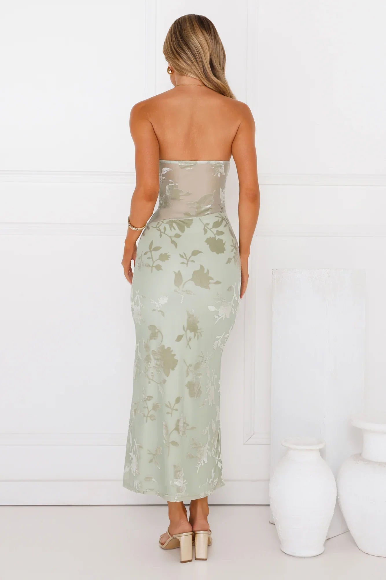 Be the best-dressed in the Style Too Good Strapless Mesh Maxi Dress. It features a gorgeous unlined bodice, a dreamy velvet-like print and a strapless neckline. Style with heels.