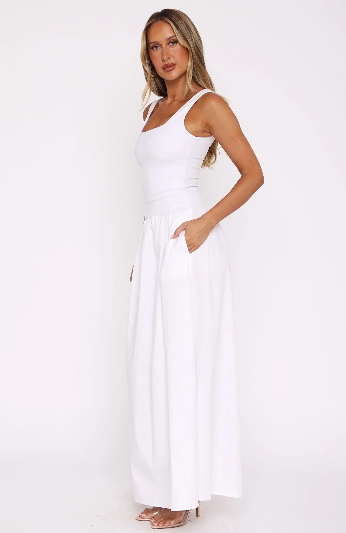 Add a touch of wow to your summer wardrobe with the Summer Delight Maxi Dress in White. Featuring thick shoulder straps, square neckline invisible back zipper and clasp closure, fitted bodice and lined, gathered skirt with side pocket design.
