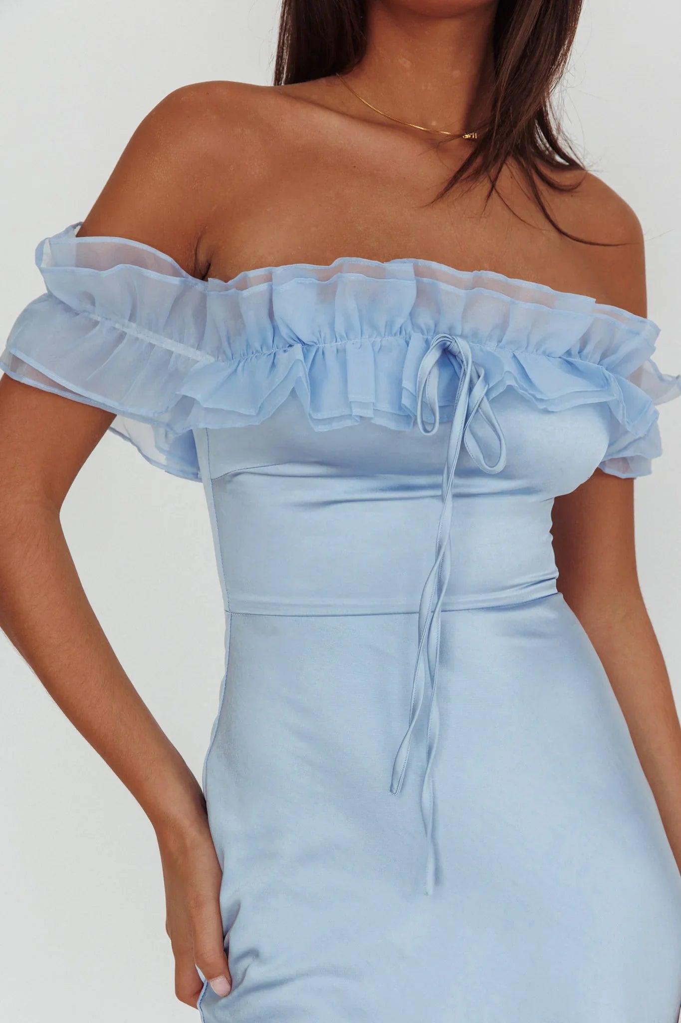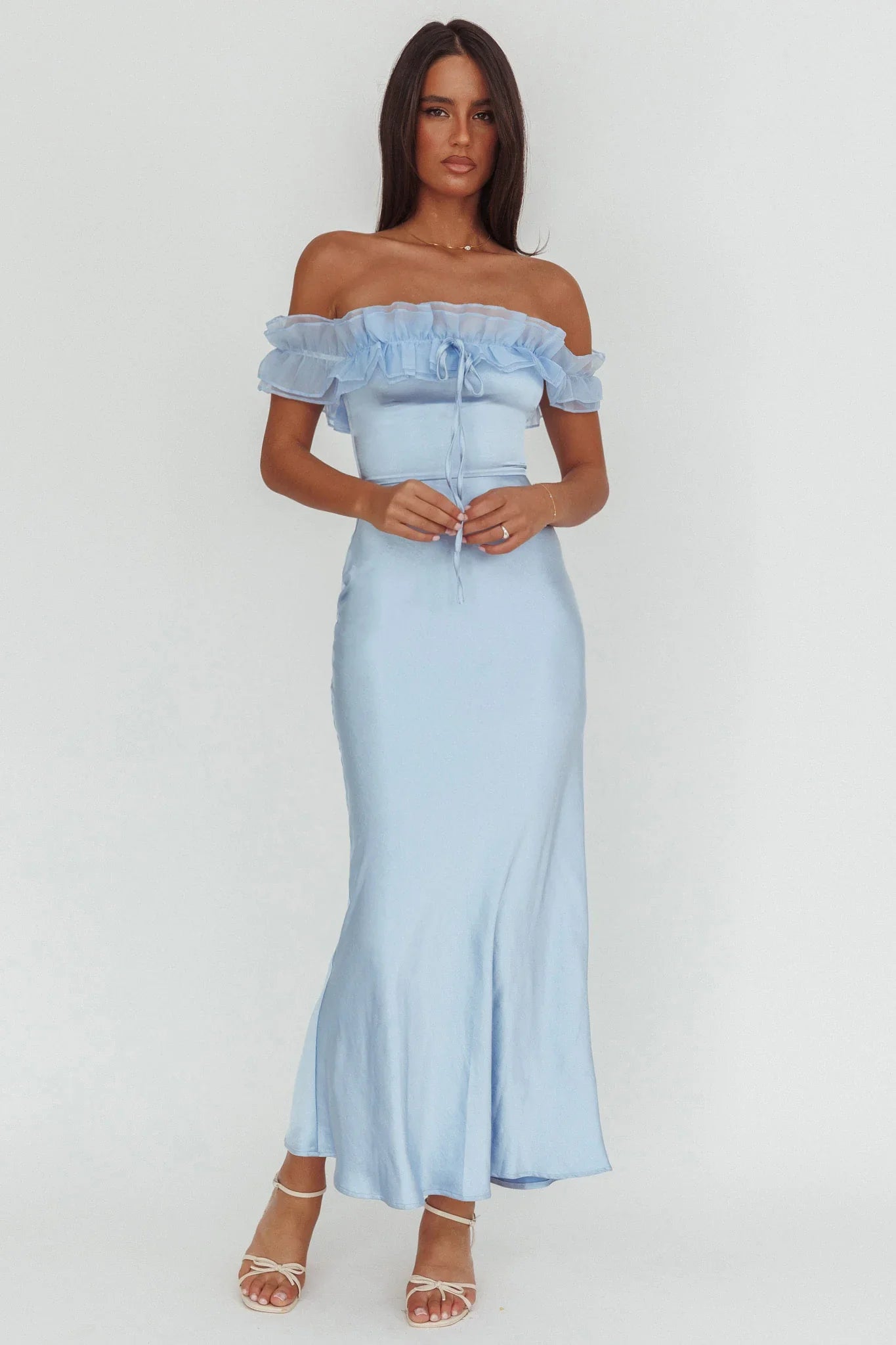 Make an entrance in our stunning Summerfield maxi dress. It features an off-shoulder design and super cute frill detail. Perfect for a wedding or special occasion teamed with heels and a clutch for an elegant look.