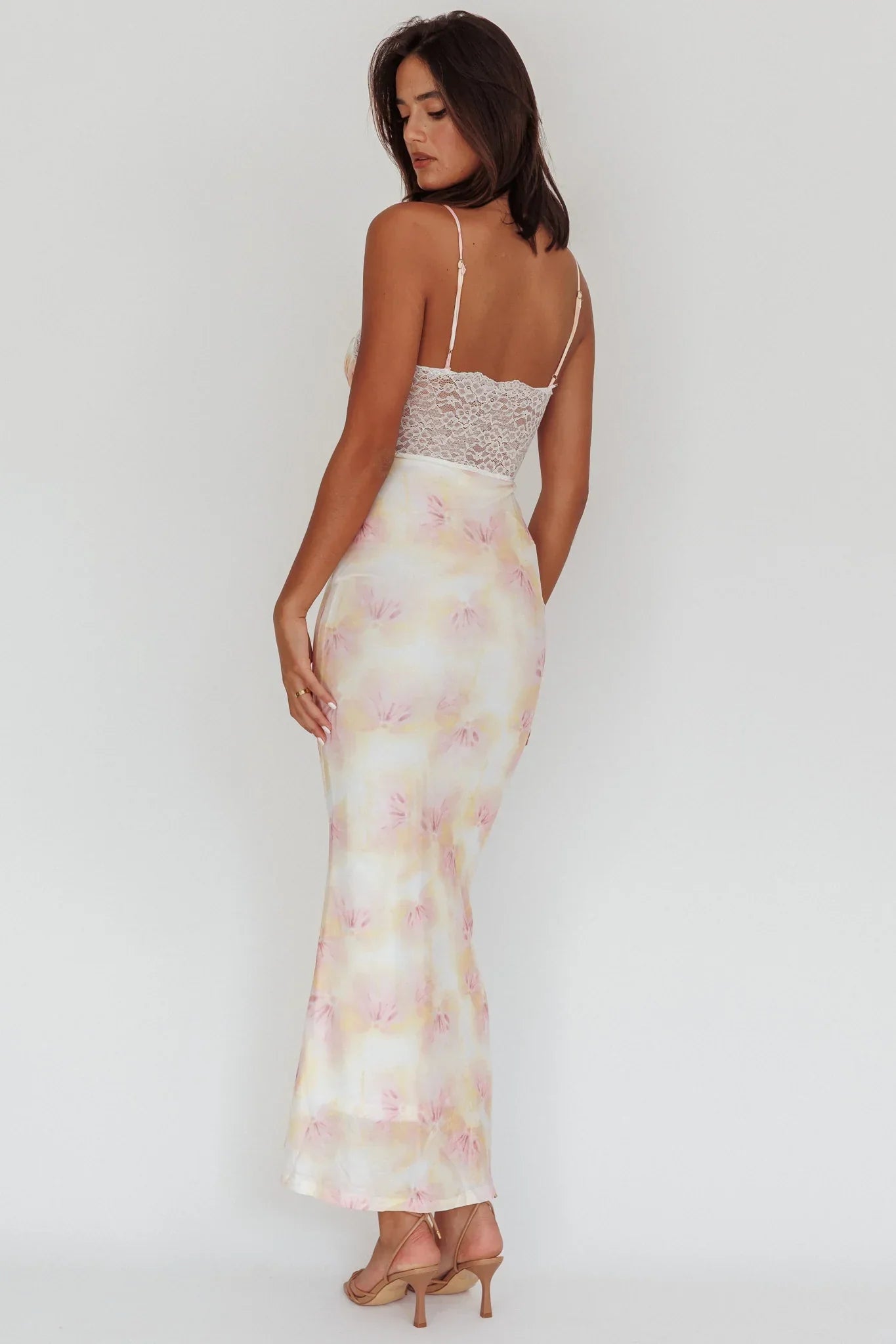 Experience the epitome of summer romance in our enchanting Super Shy maxi dress, adorned with delicate lace detailing at the waist and back. Crafted from luxuriously soft satin, this dress drapes beautifully over your silhouette while the floral print exudes a sense of femininity. Whether you're attending a garden wedding or sipping cocktails at sunset, this dress is sure to captivate hearts. Complete your look with your favourite pair of heels and jewellery!