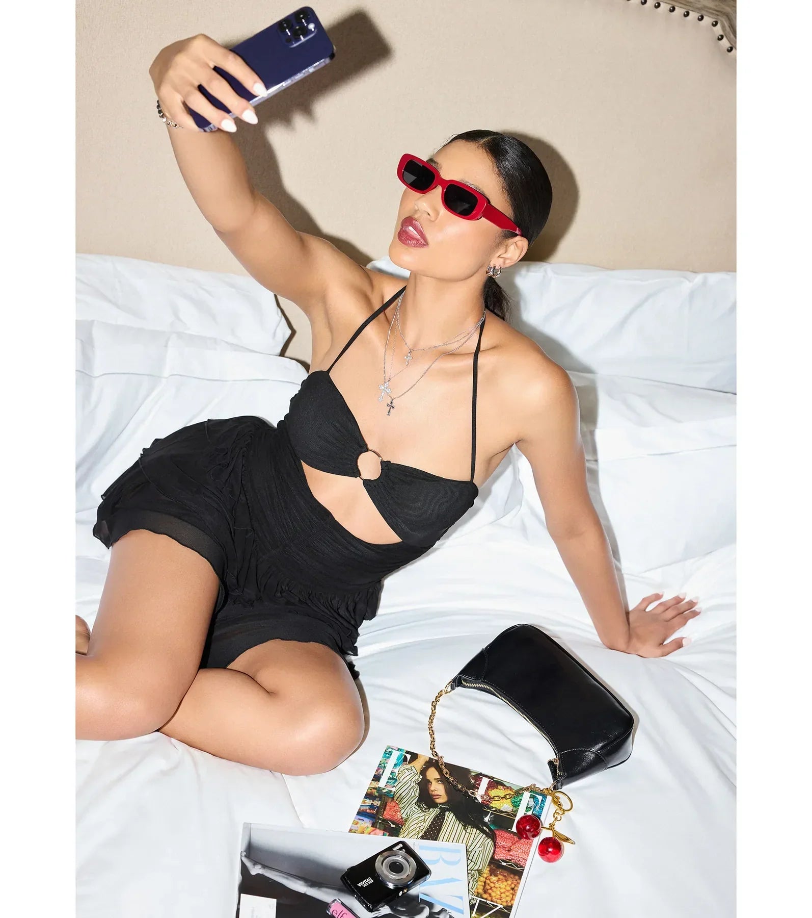 So flattering for a night-out occasion, this skater dress is featured in a flattering halter neckline with a chic hoop insert and a cutout bodice that shows some skin!