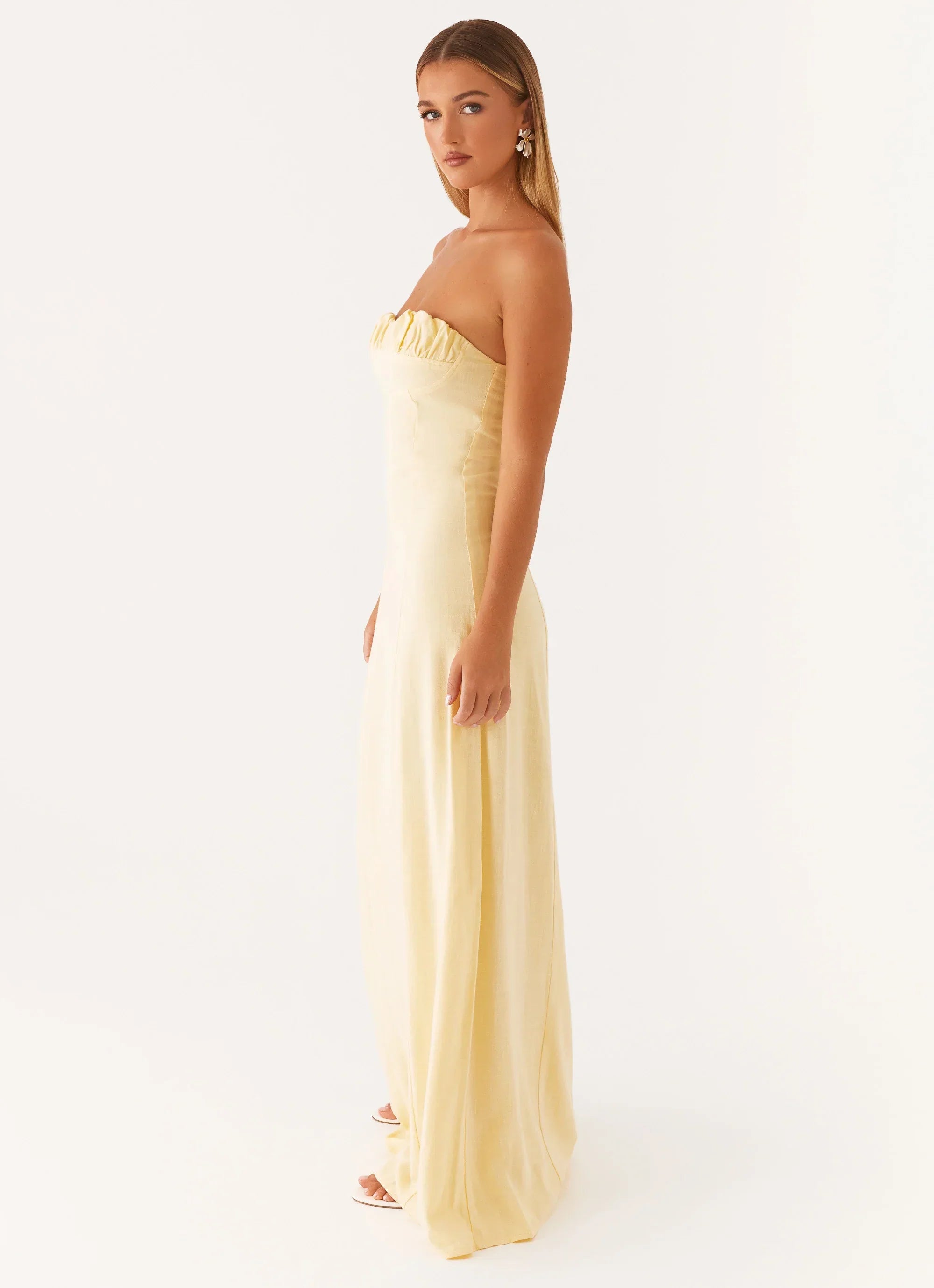 The Tayla Linen Maxi Dress is a timeless piece that exudes effortless elegance. Featuring a strapless neckline, it highlights the shoulders with a soft, feminine touch. Fully lined for comfort, the flare fit adds a flowing, graceful silhouette. Crafted from breathable linen, this maxi dress is perfect for warm weather and special occasions, offering both style and comfort in one chic design.