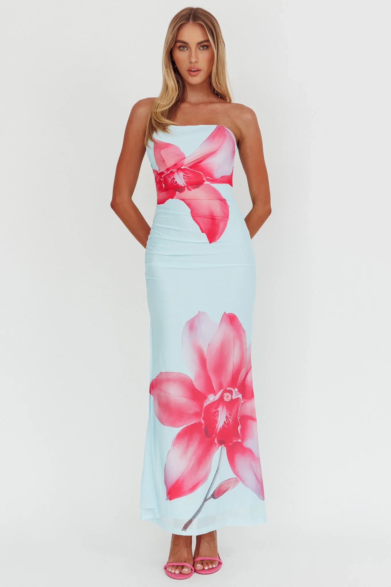 Steal the spotlight in our gorgeous Truth Be Told maxi dress. We are in love with its figure-hugging ruching detail in the sides and pretty floral print. Perfect for Friday night dinner and cocktails with your girls! Team it with strappy heels and a saddle bag for a look that will turn heads.