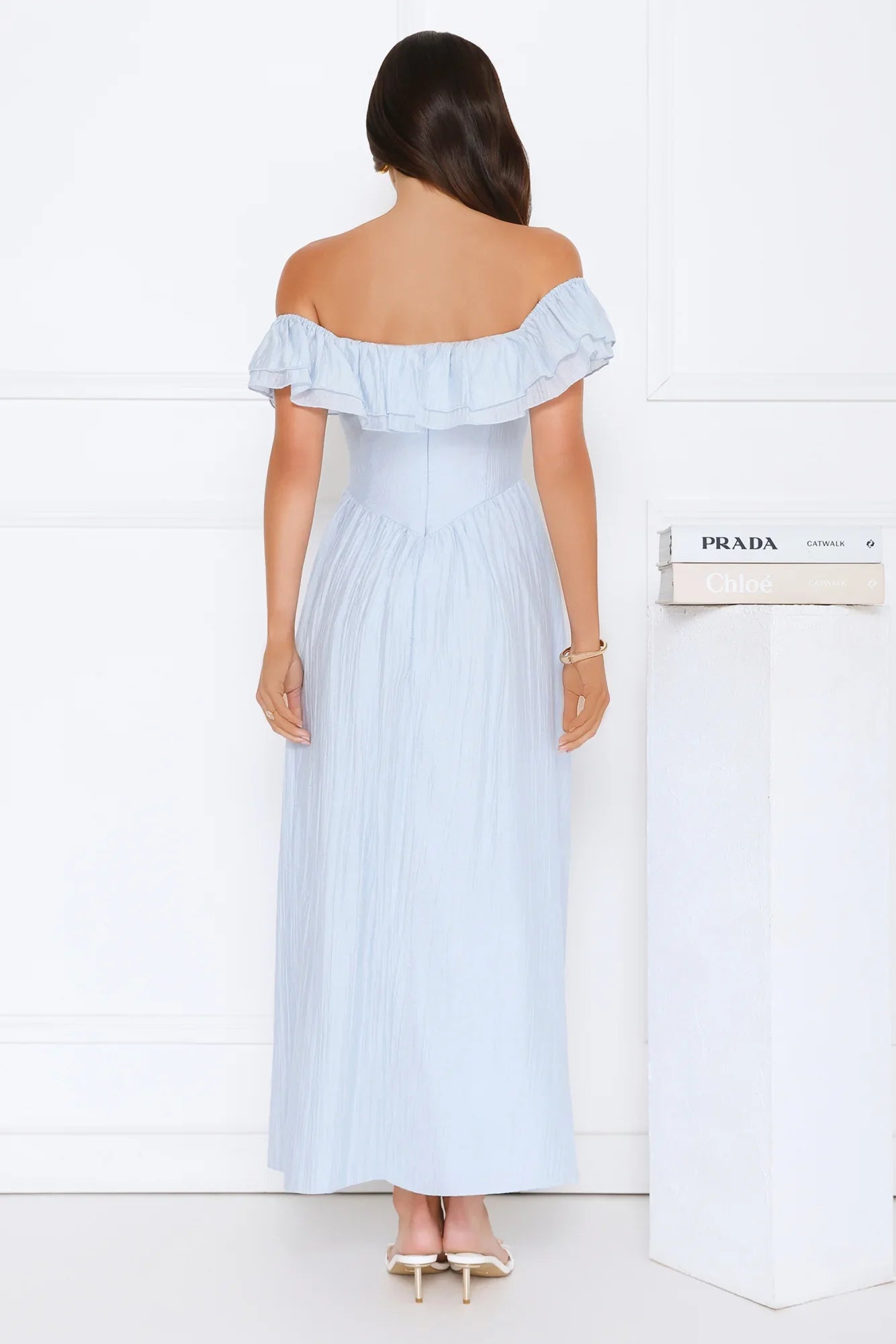 Soft ruffles and romantic sleeves come together in the Twilight Sonata Off Shoulder Maxi Dress. Crafted from a viscose-blend fabric, this off-shoulder silhouette flatters with its structured bodice and flowing skirt. Style with dainty heels, tousled waves, and a glass of something sparkling.