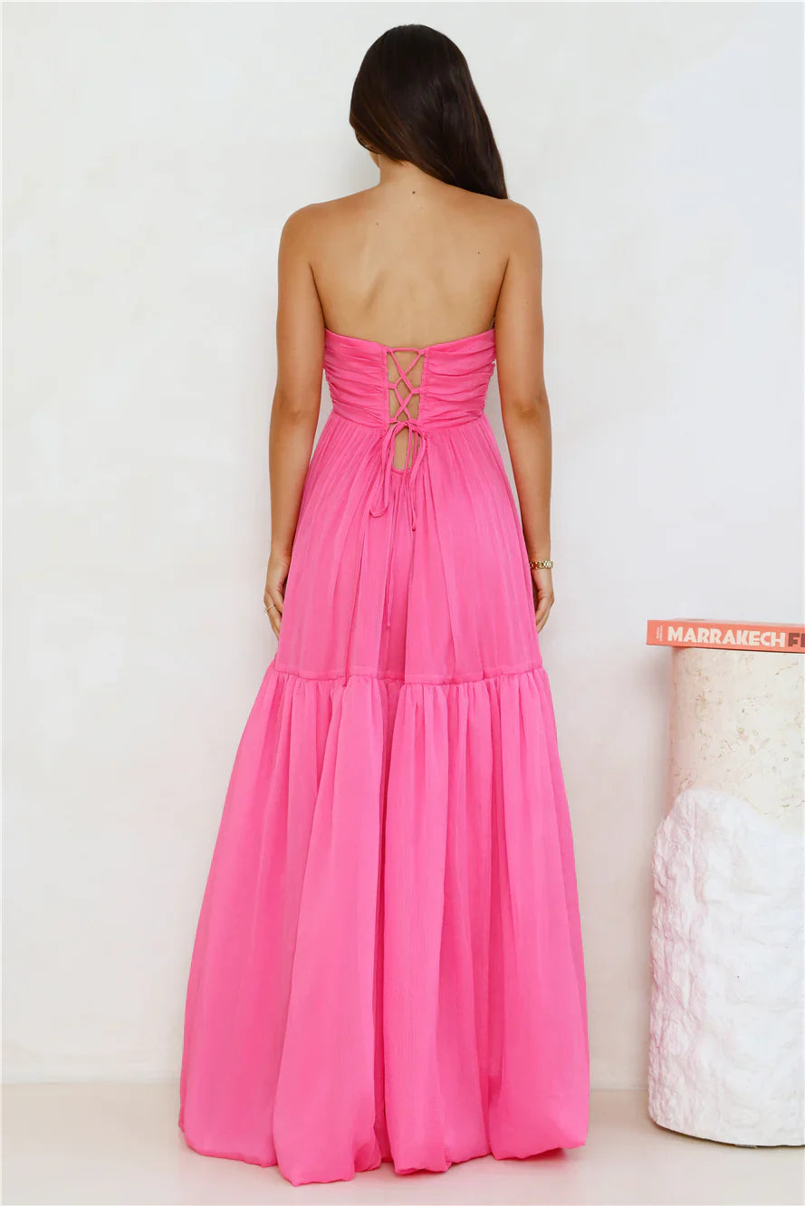 Enter as the best-dressed guest with the Unforgettable Style Strapless Maxi Dress. It features a strapless neckline, a crisscross back tie, a gorgeous bubble hem and an elastic back. Style with heels to impress.